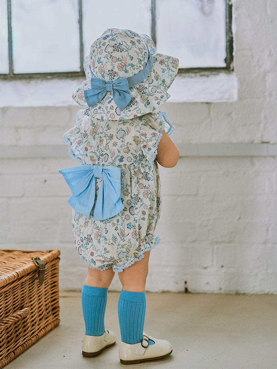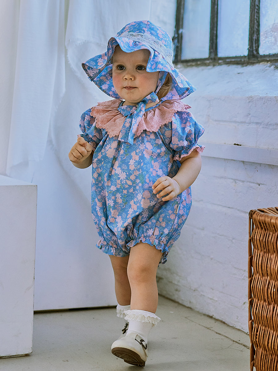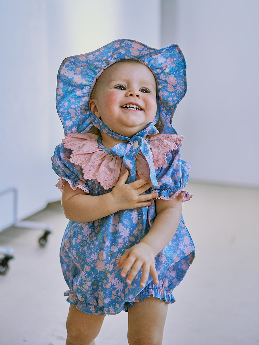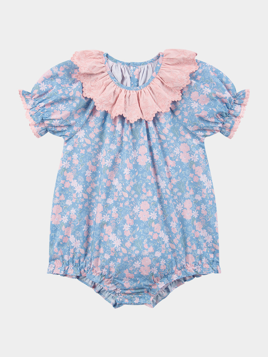 Grasmere Embroidered Collar Romper, Wildflower Lawn Blue