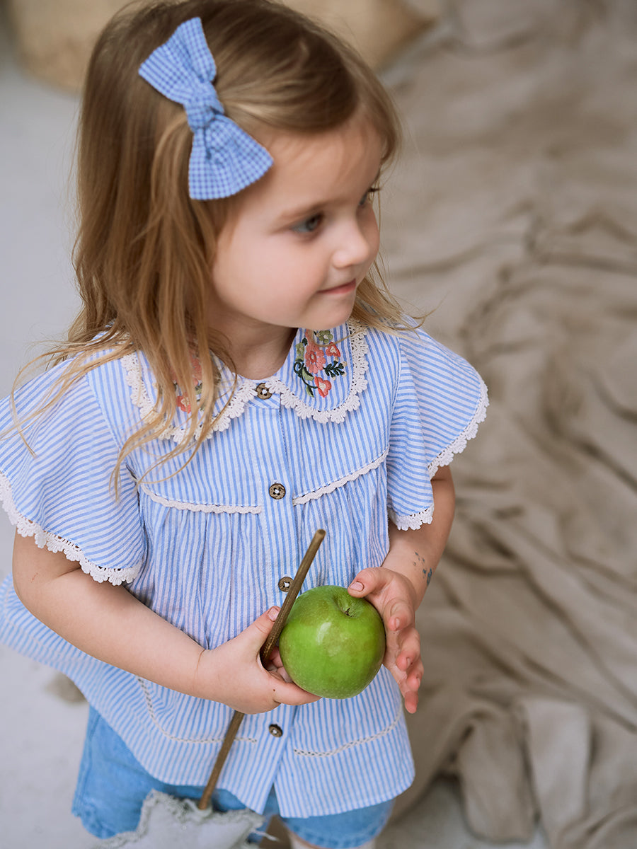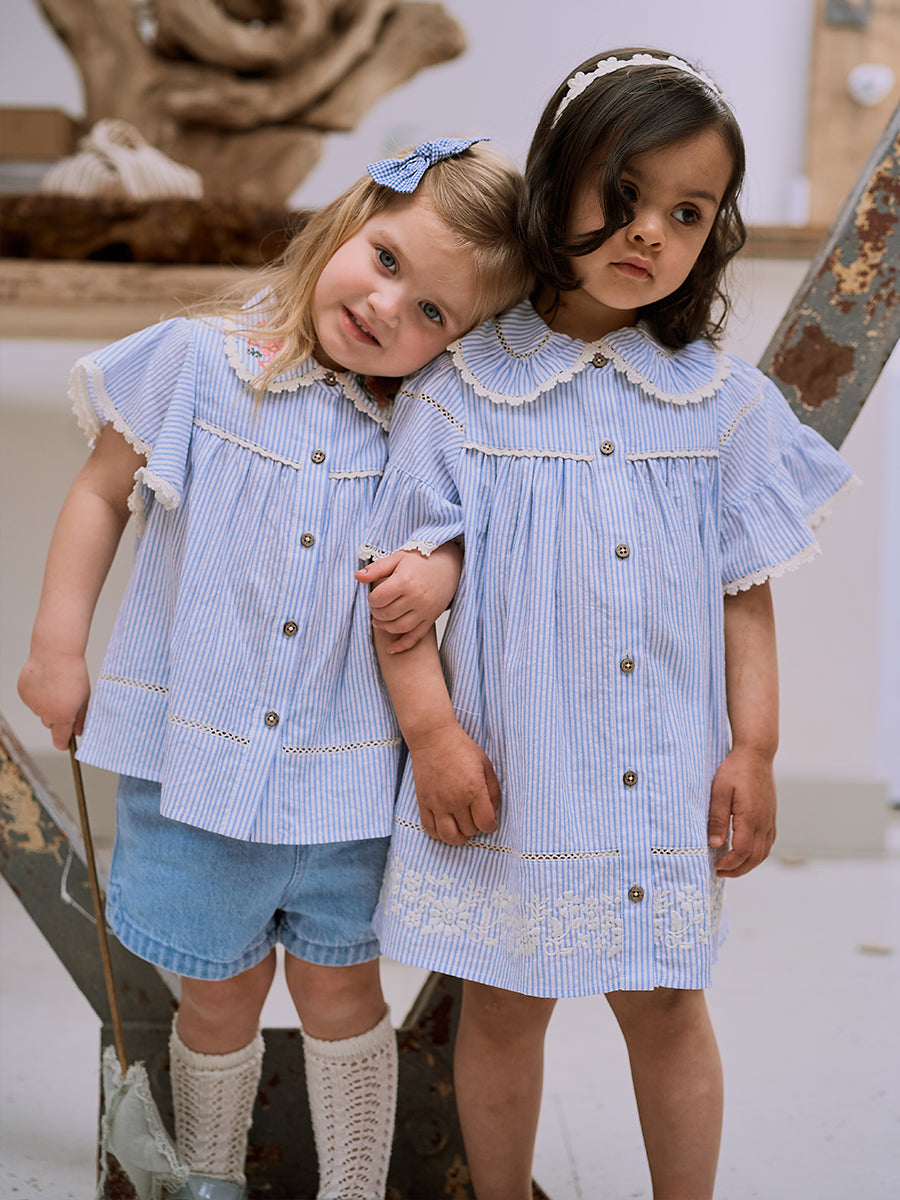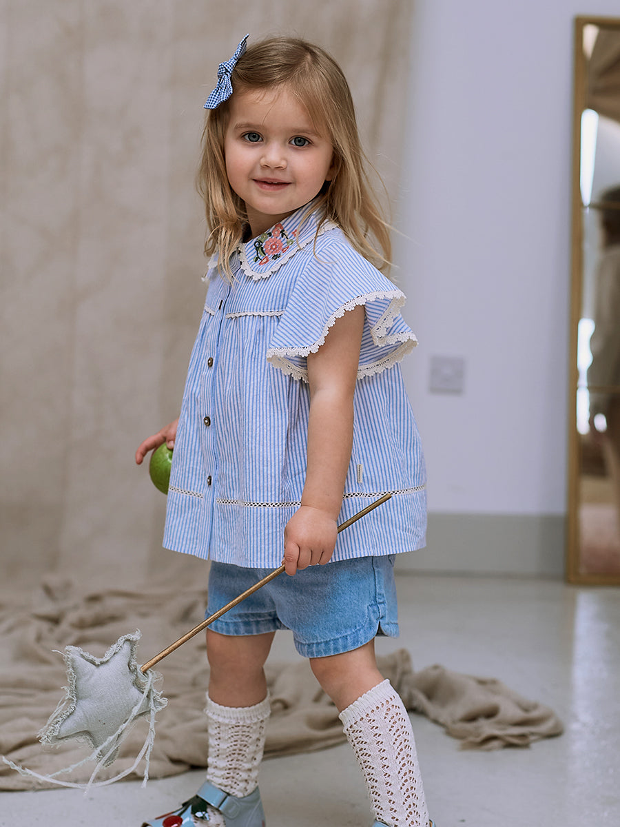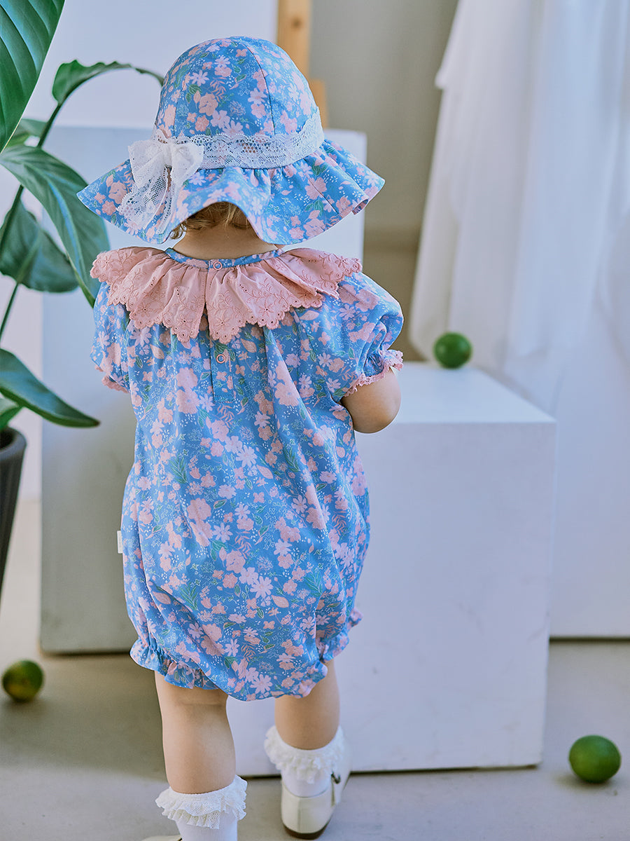 Grasmere Embroidered Collar Romper, Wildflower Lawn Blue
