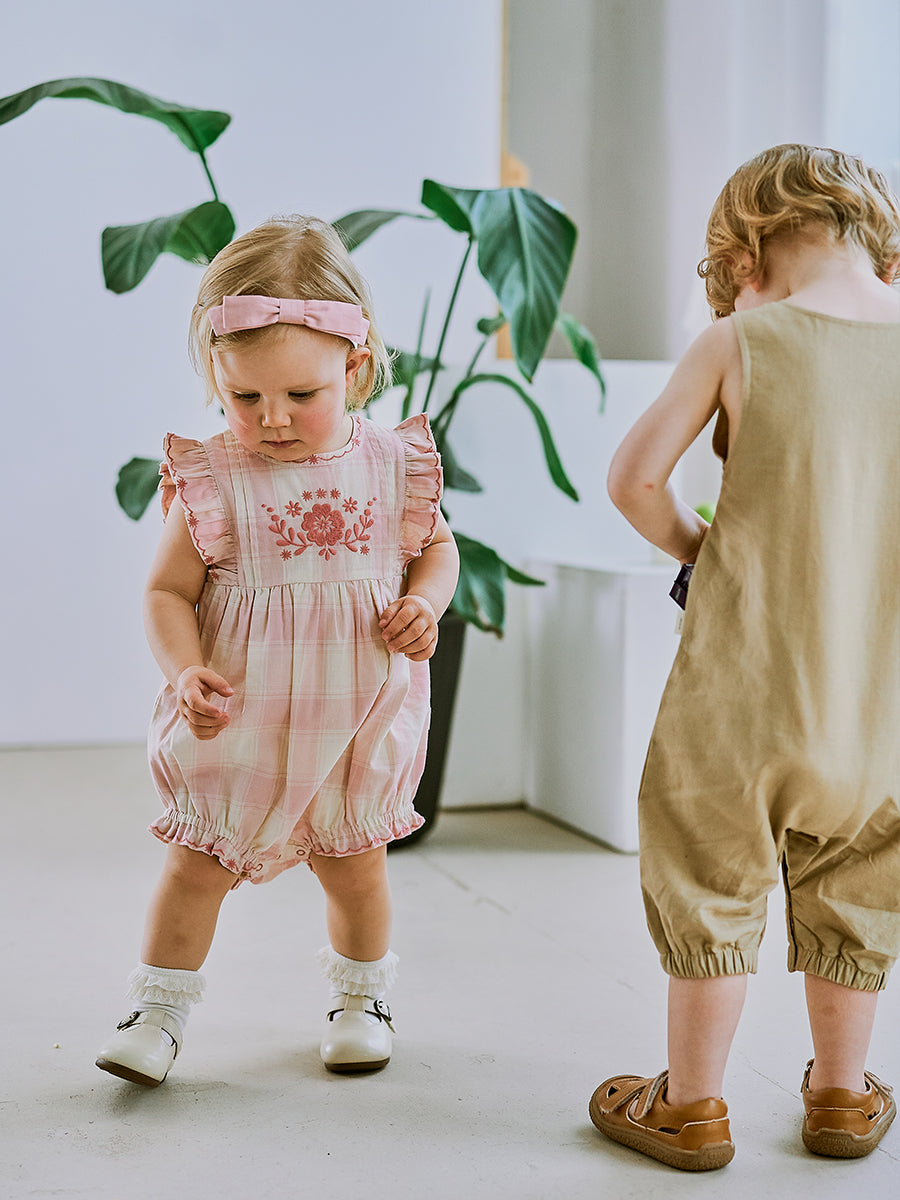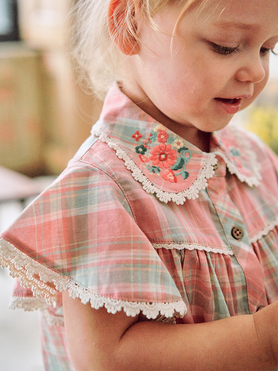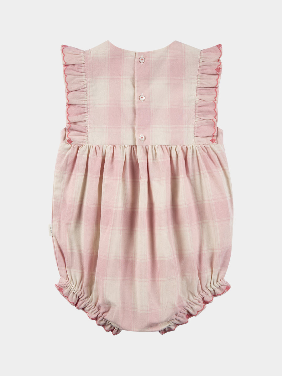 Arundel Embroidered Romper, Pink Check