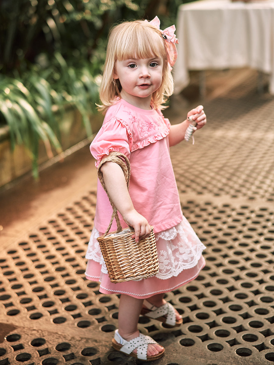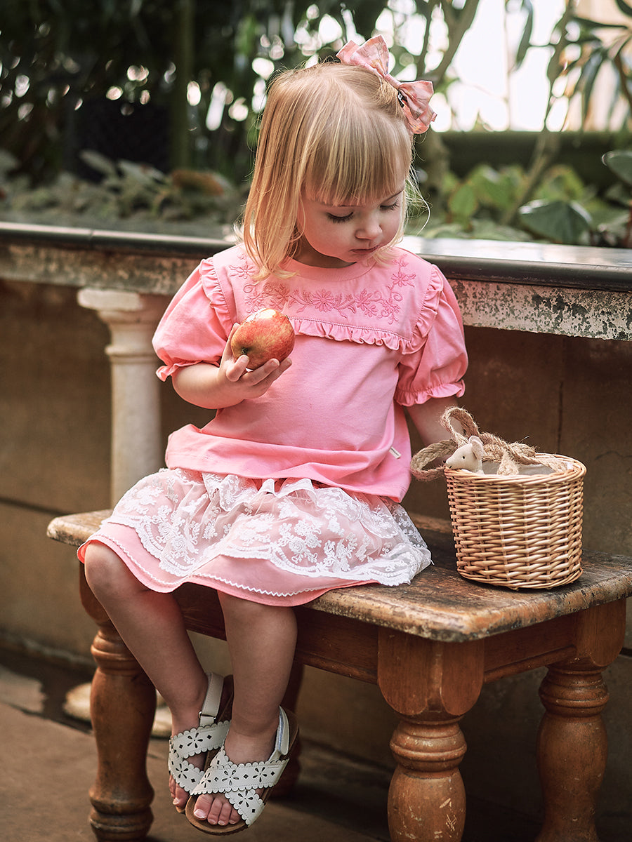Strawberry Hand-Embroidered Romper, Princess Pink
