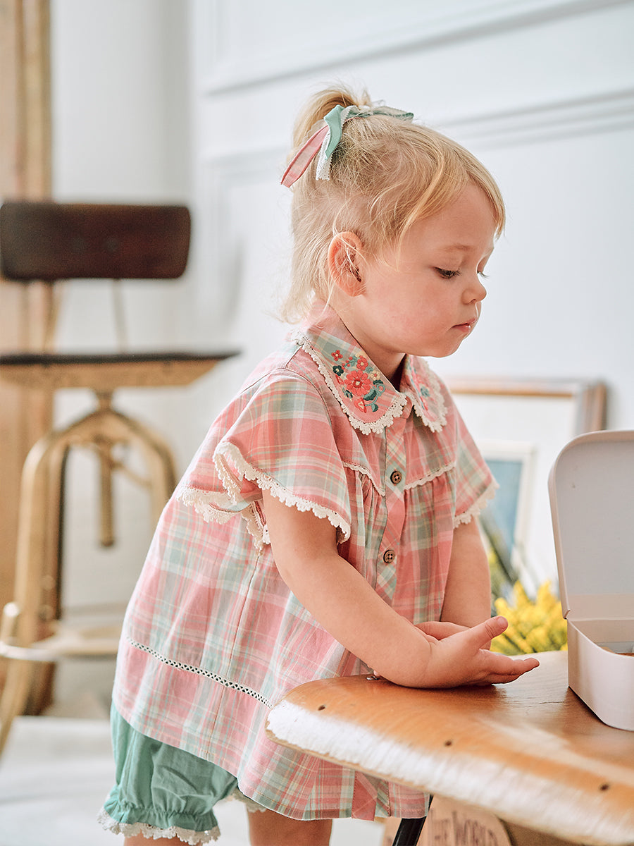 Arundel Embroidered Romper, Green Check