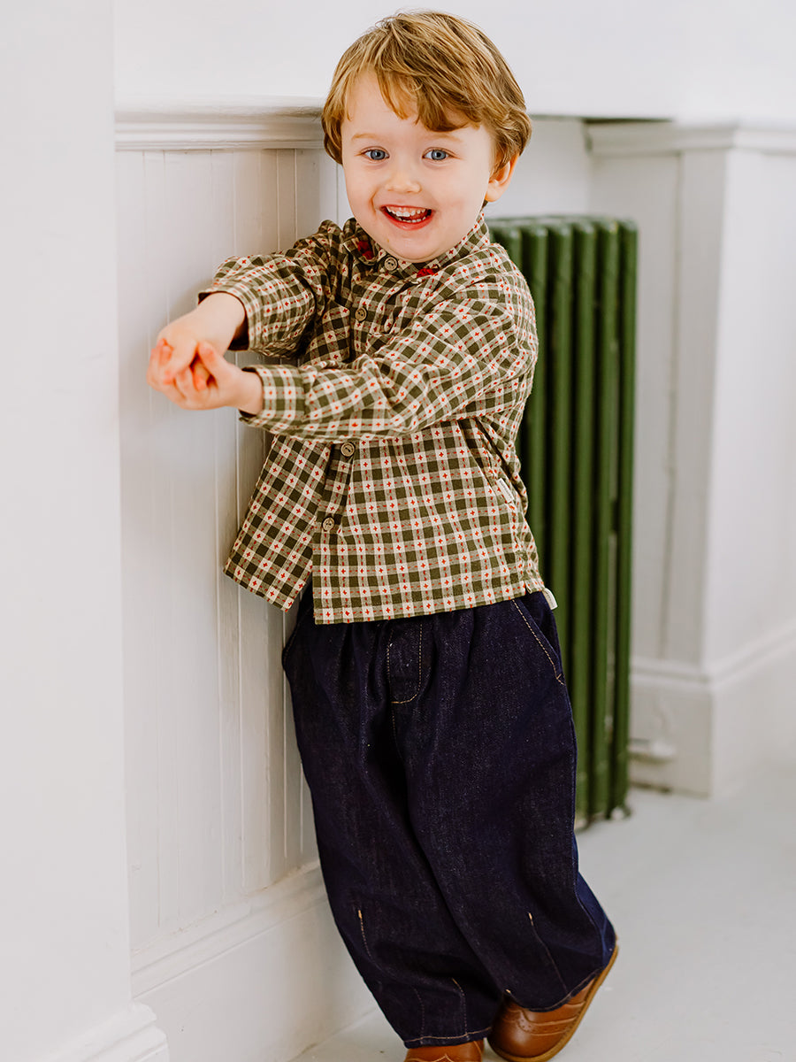 Rennes Embroidered Shirt, Green Check
