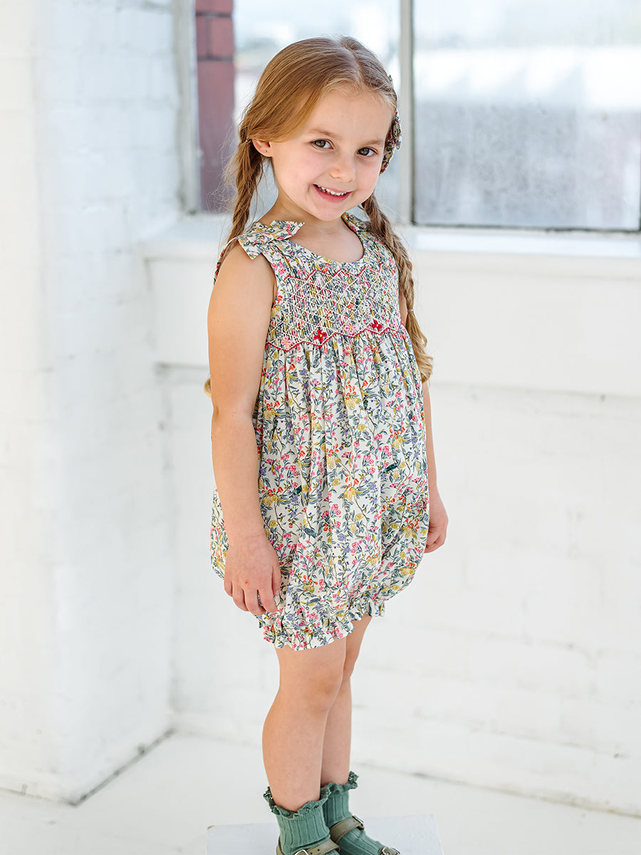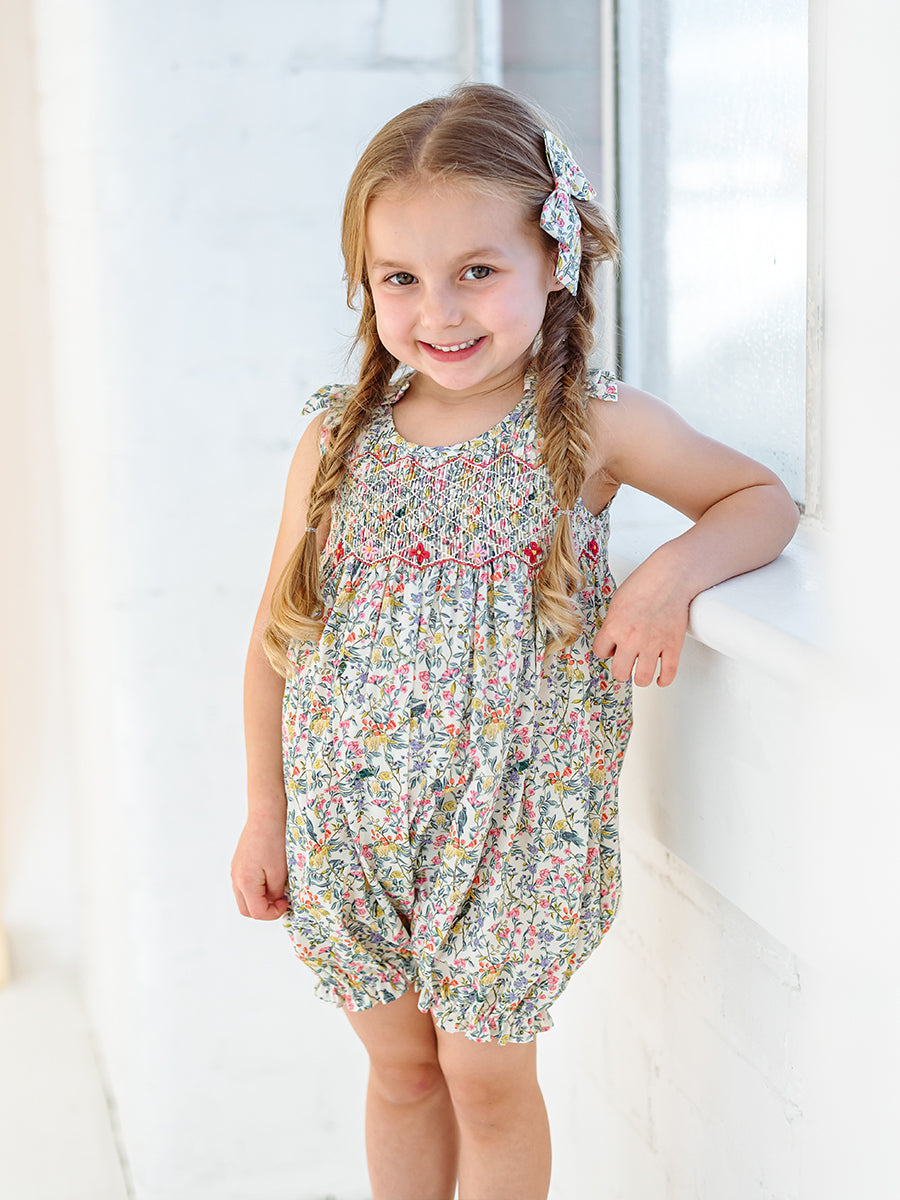 Hedera Smocking Romper, Fine Spring Day