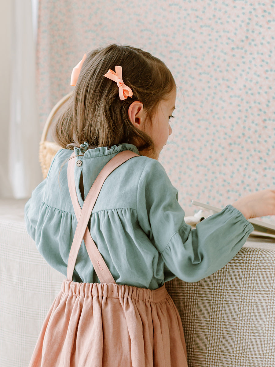 Jessielle Ankle Socks with Floral Ruffle, Misty Pink & Avocado Green