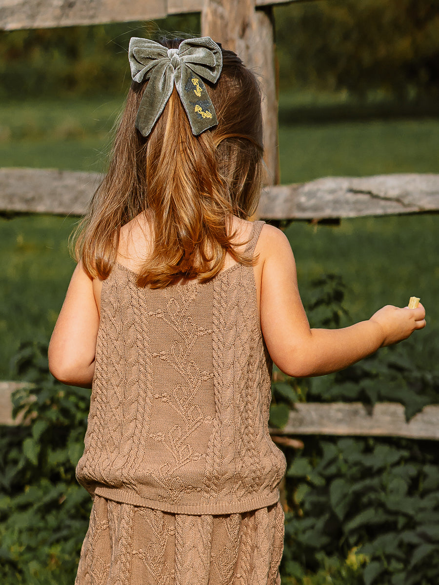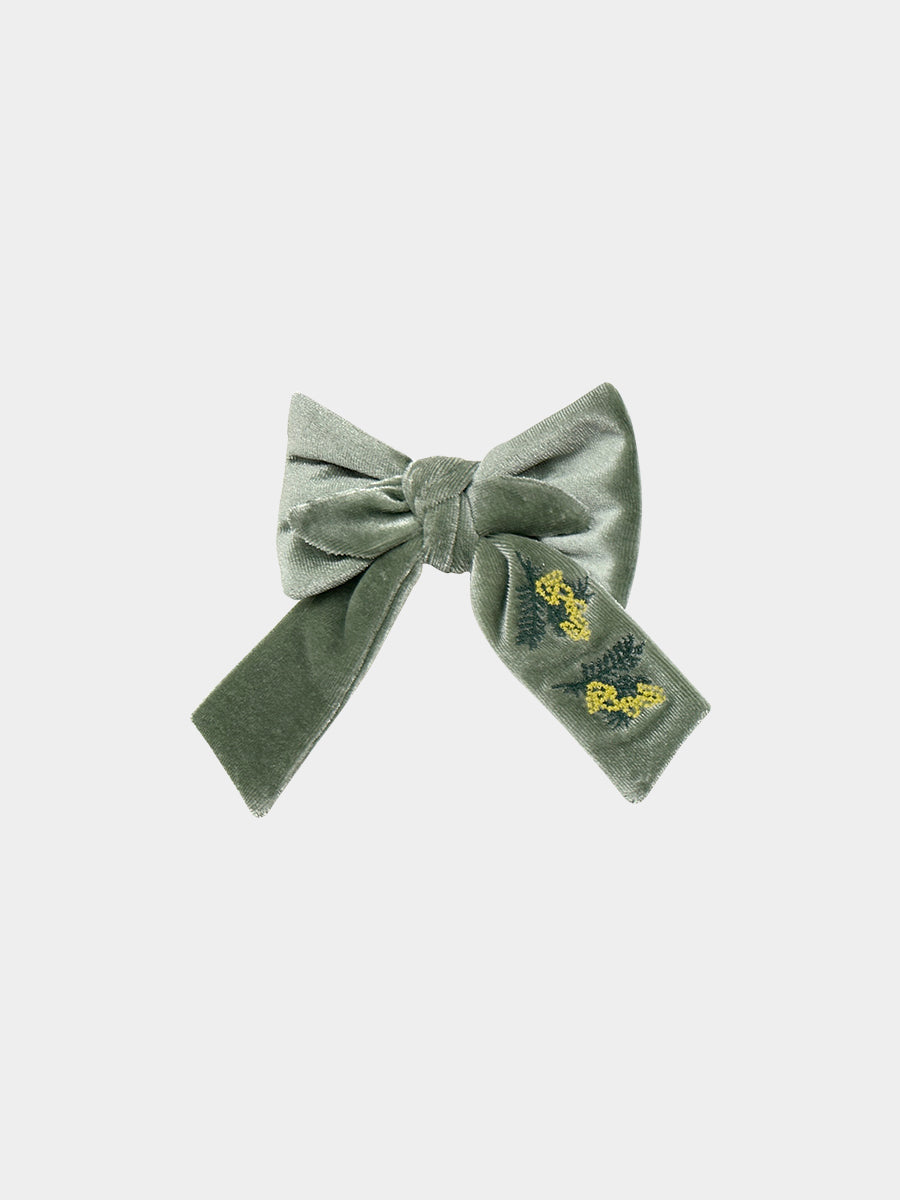 Vienna Embroidered Bow Hair Clip, Moss Green