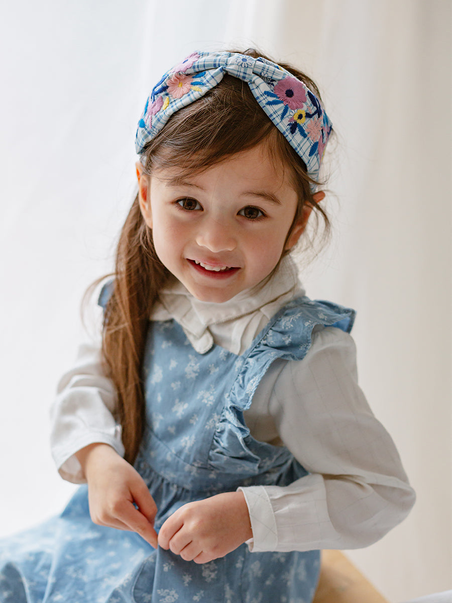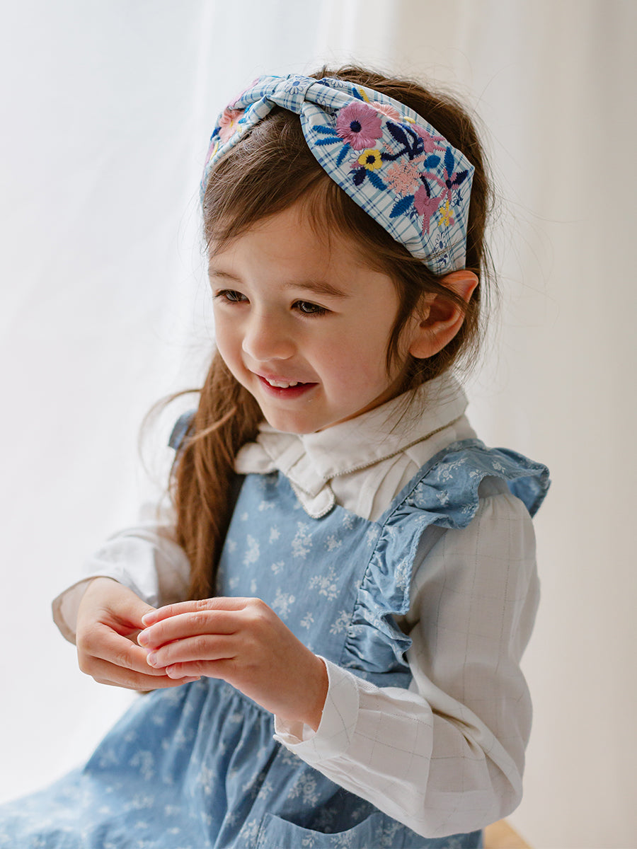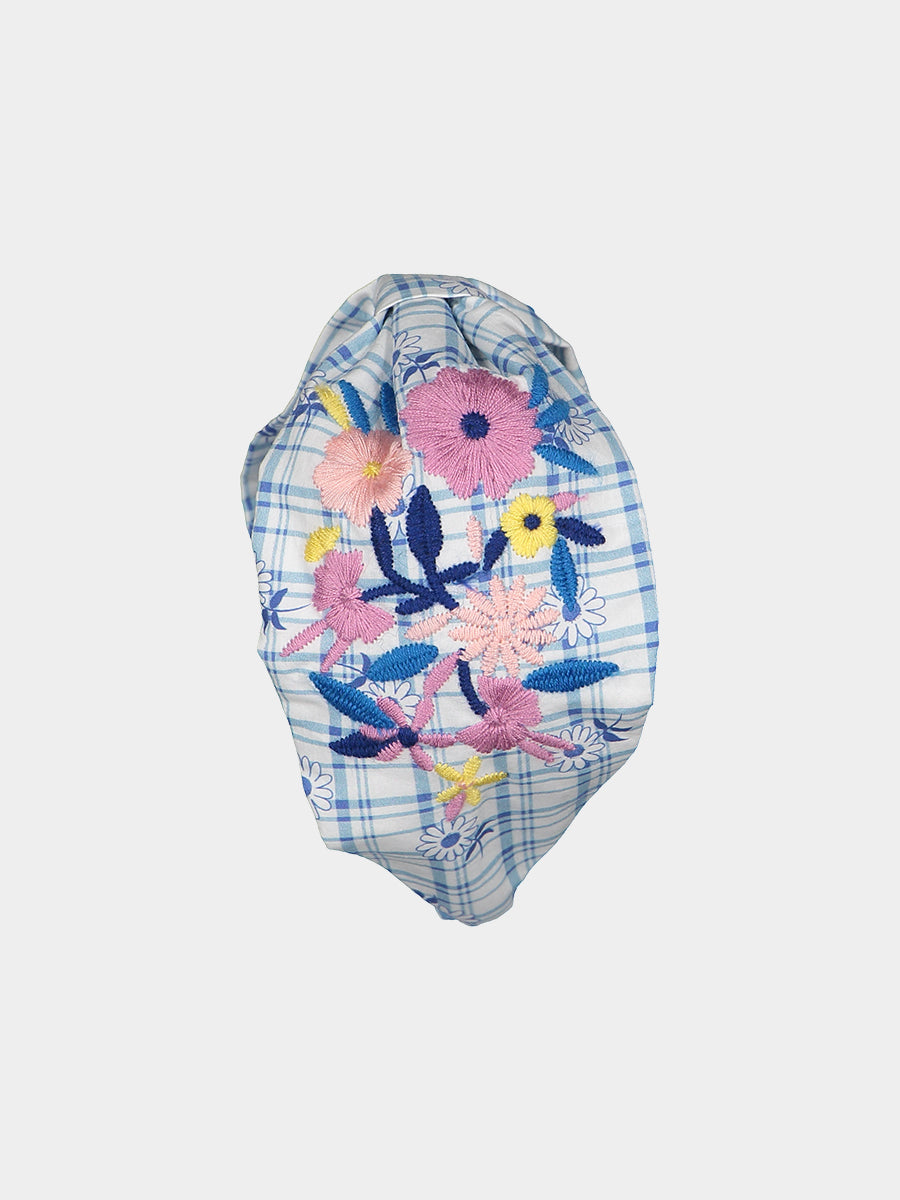 Artisan Embroidery Headband, Blue Check