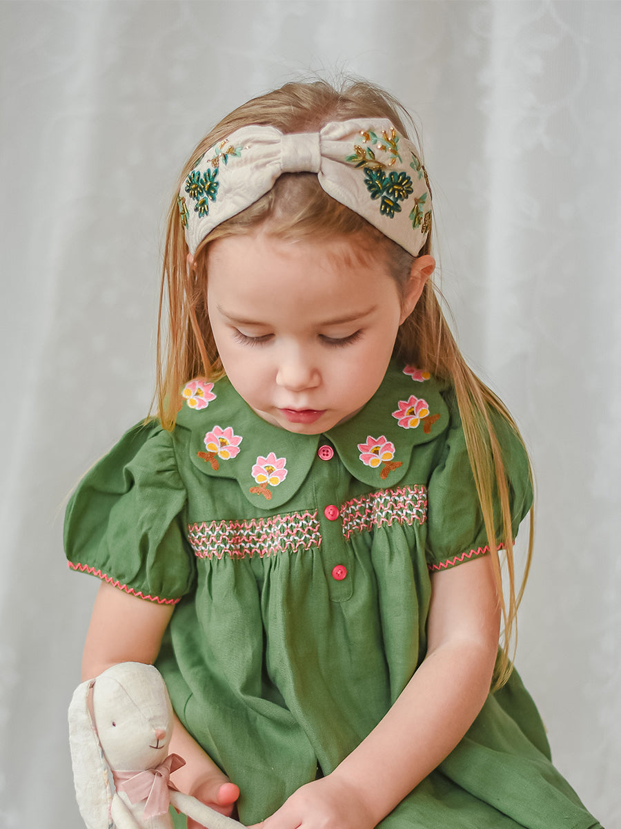 Artisan Embroidery Headband, Green Check