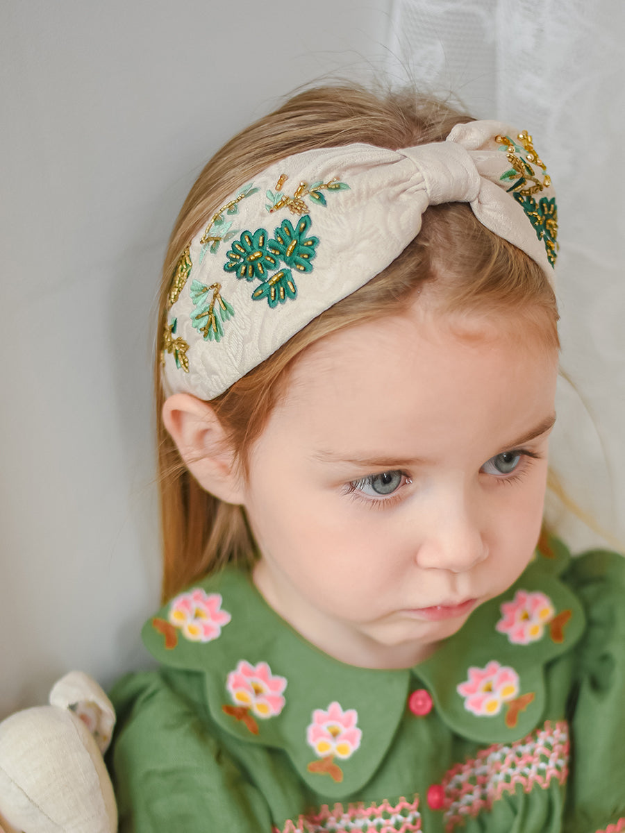 Artisan Embroidery Headband, Beaded Leaves