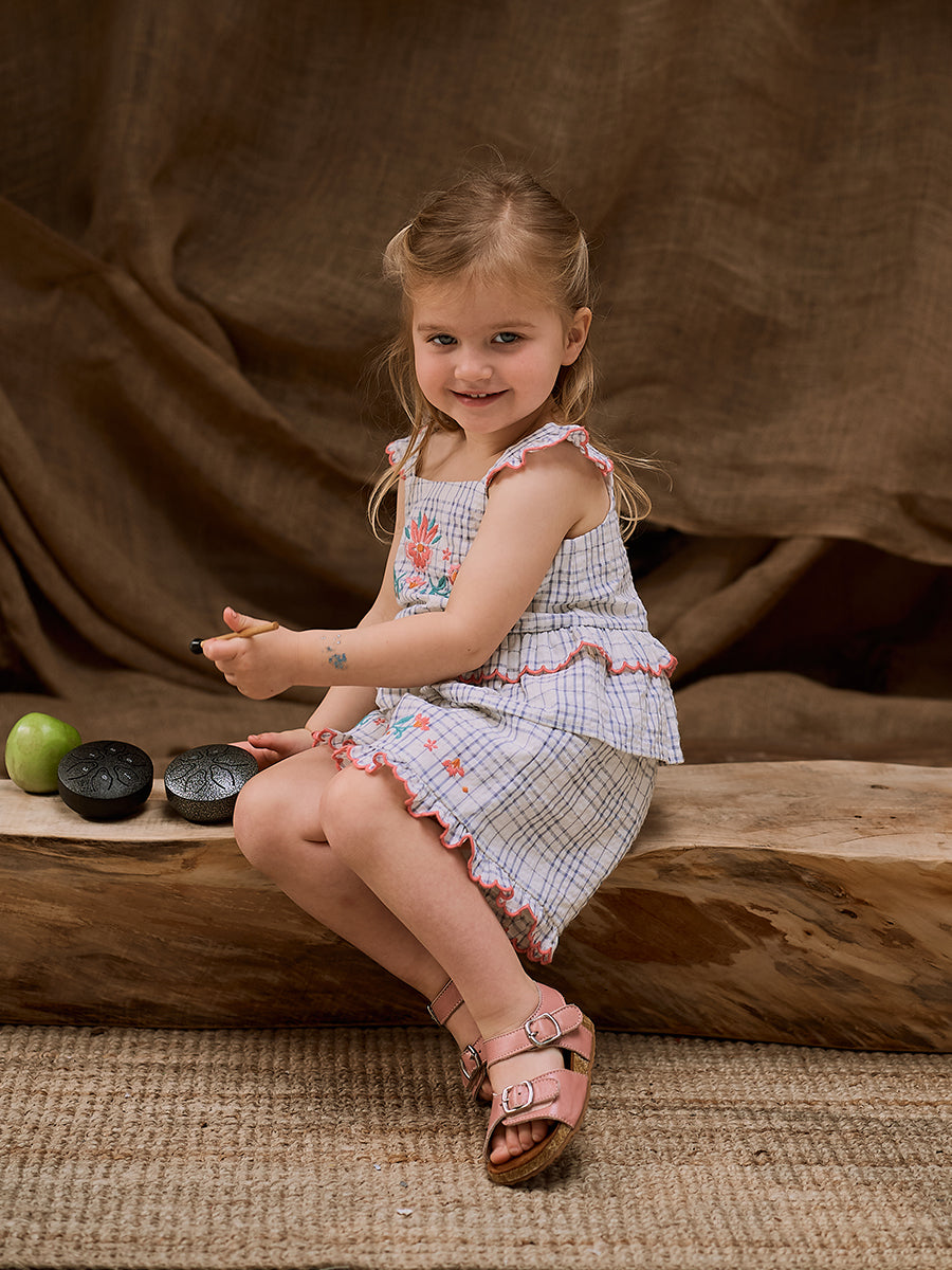 Amrita Embroidered Top, Blue Check