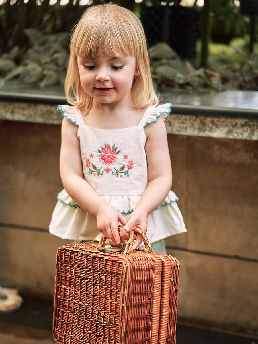 Arundel Embroidered Romper, Green Check