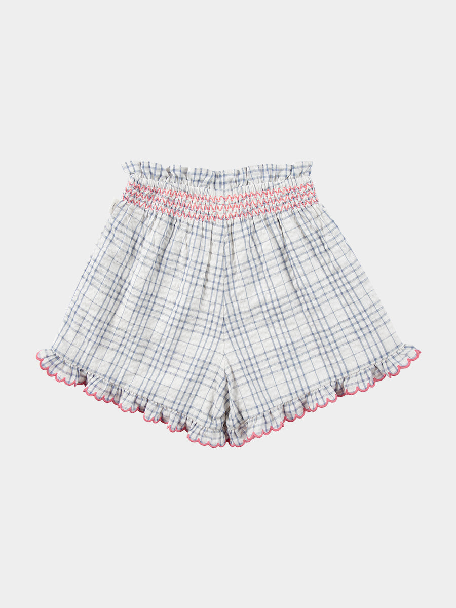 Amrita Embroidered Shorts, Blue Check