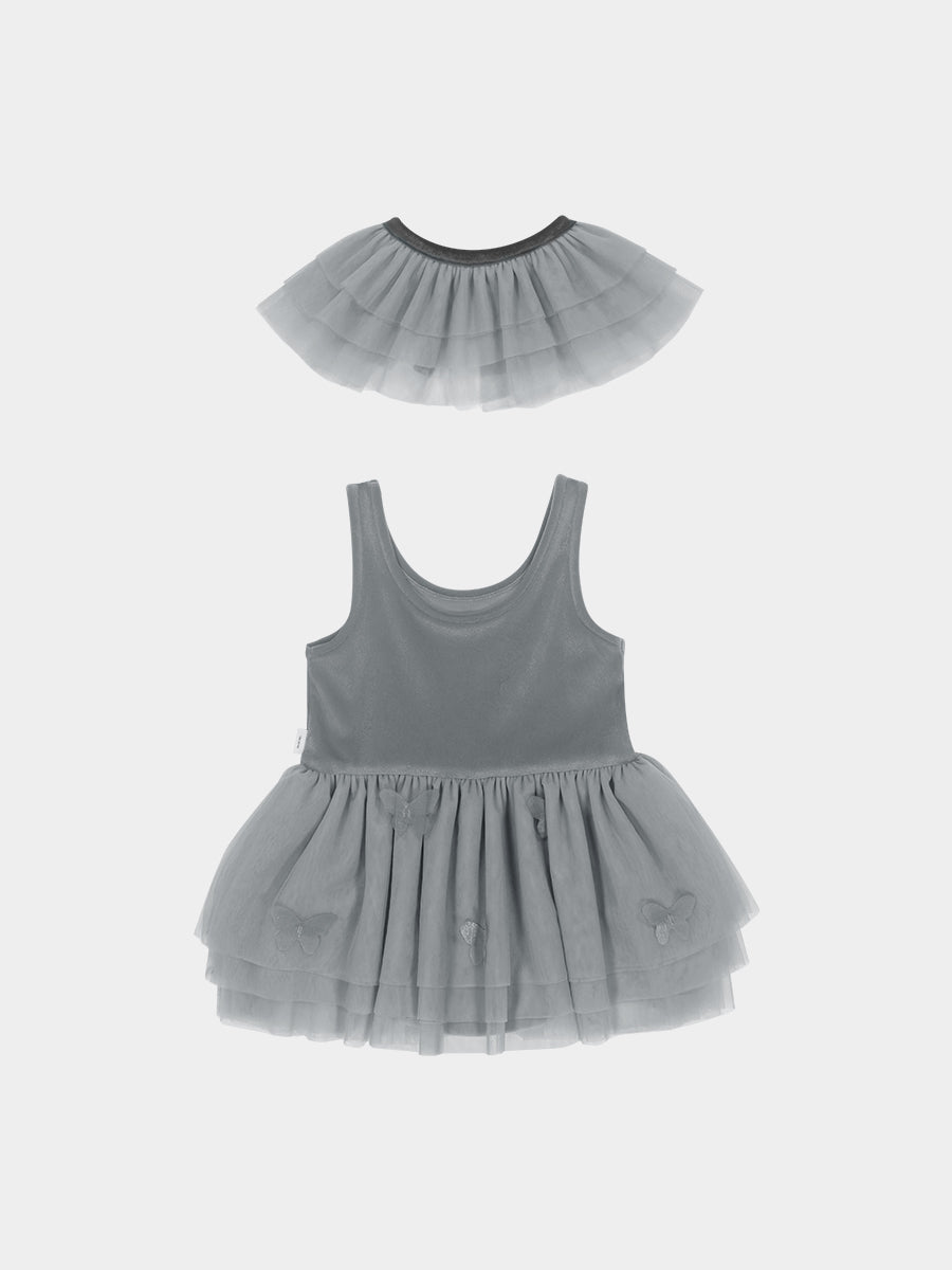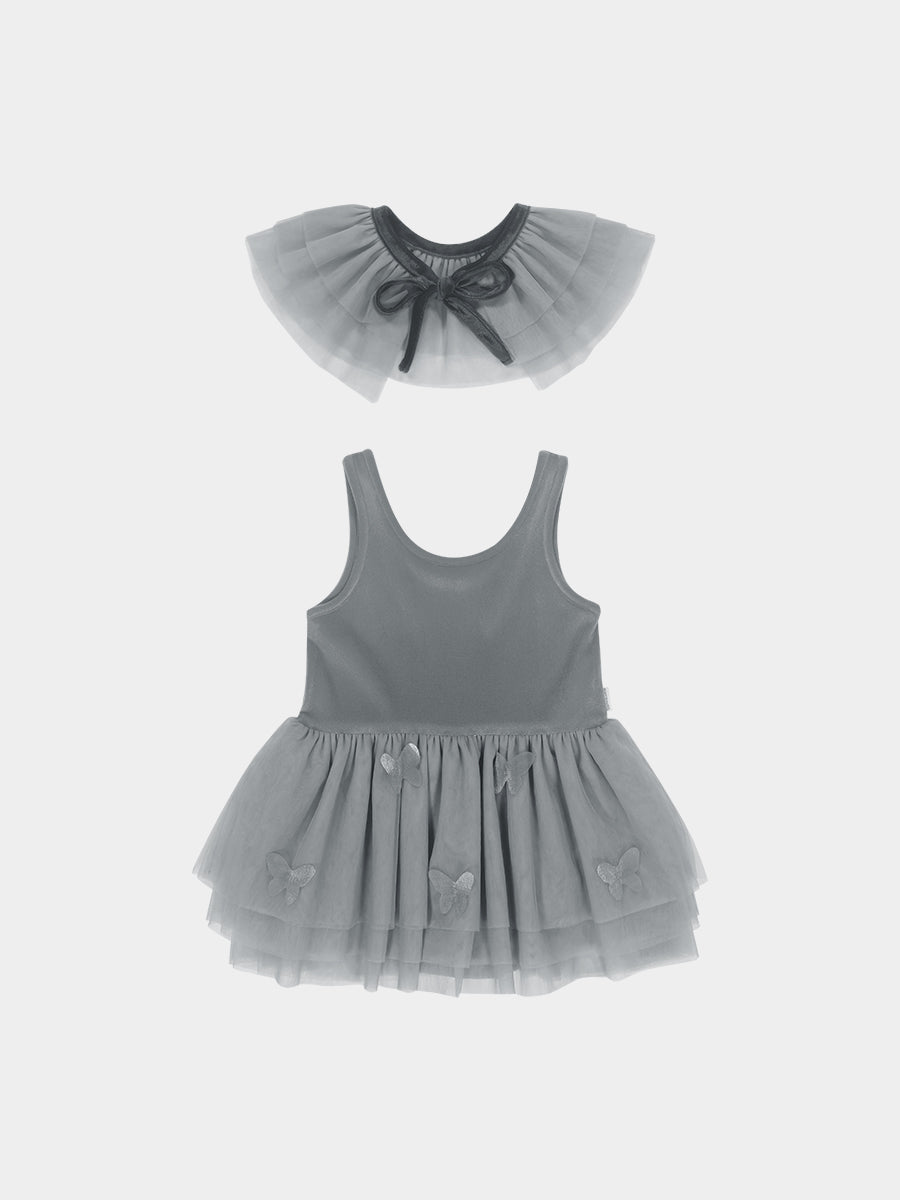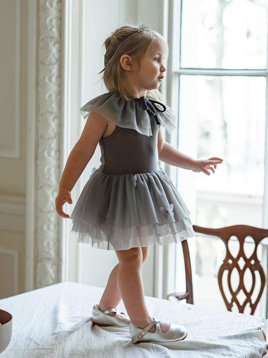 Whitby Tulle Dress & Collar Set, Misty Grey