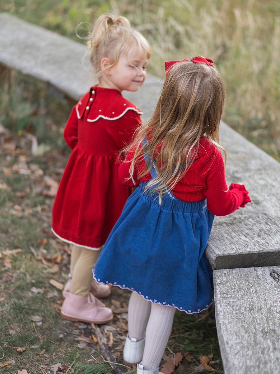 Kalmia Embroidered Corduroy Overall Dress, Wine Red
