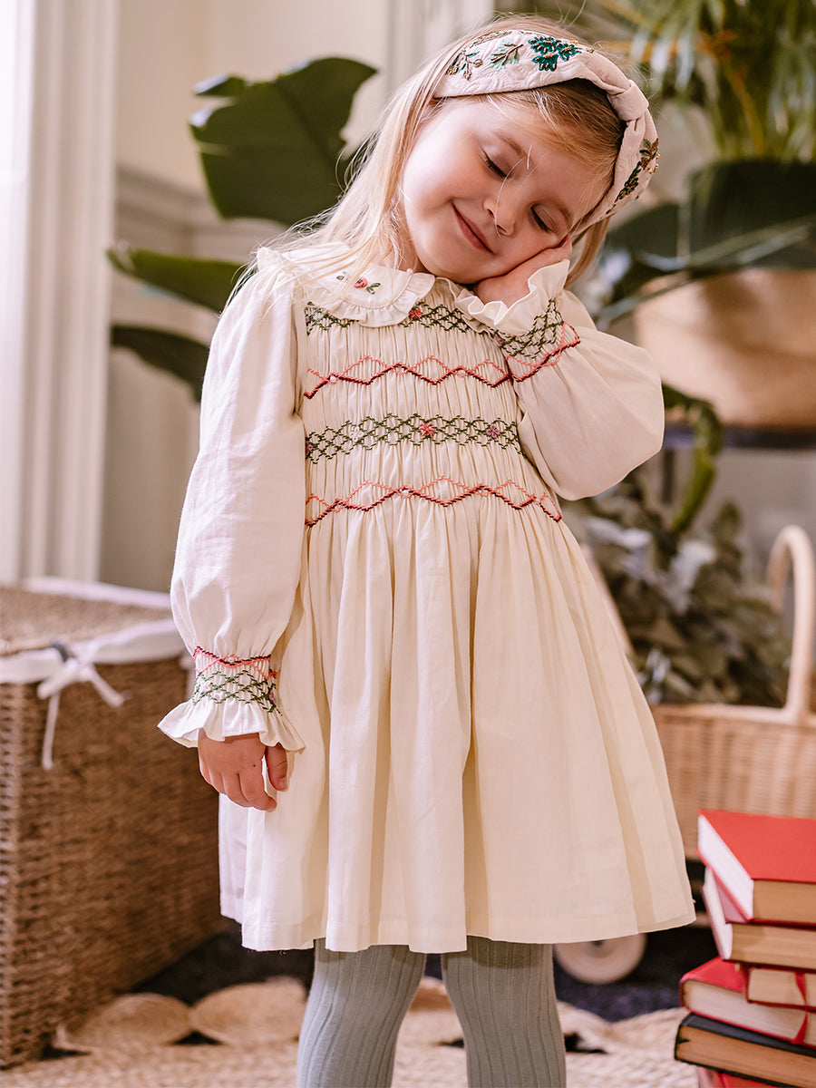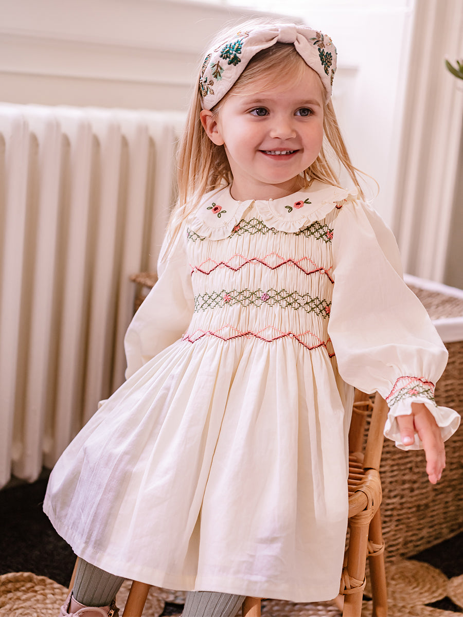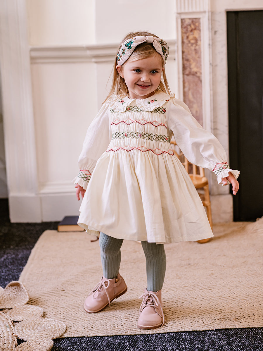 Abigail Hand-Smocked Dress, Farnese Garden, Cream
