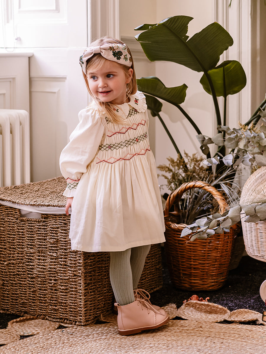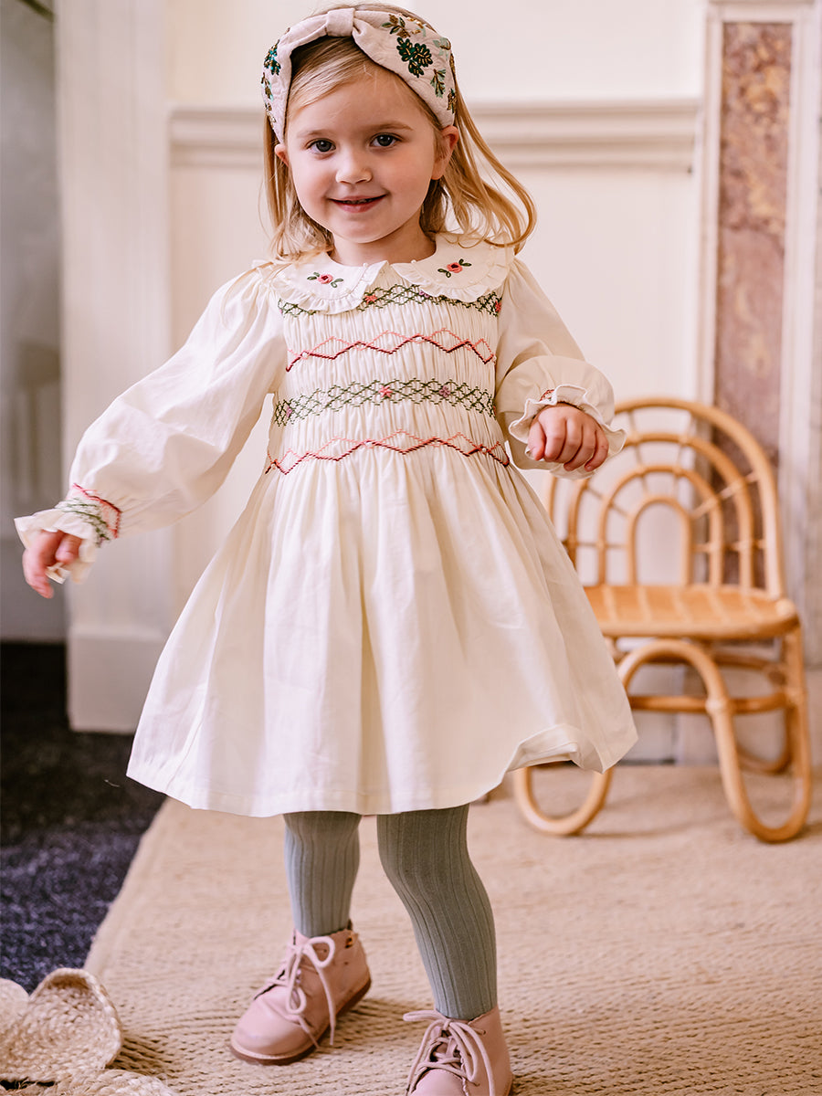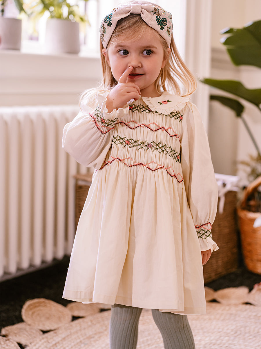 Abigail Hand-Smocked Dress, Farnese Garden, Cream