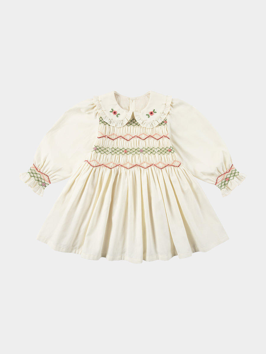 Izzy Hand-Smocking Dress, Ivory White