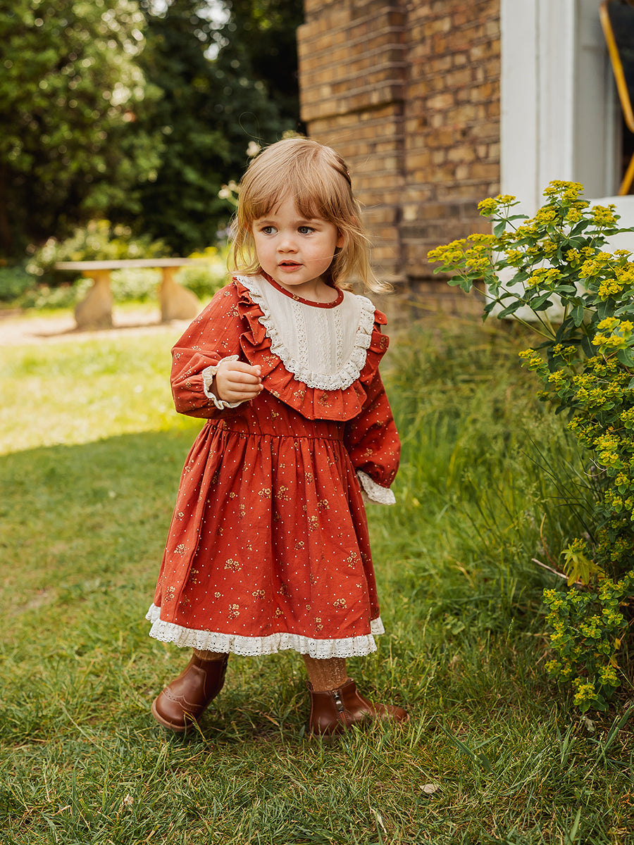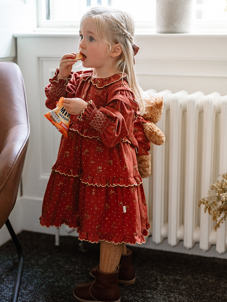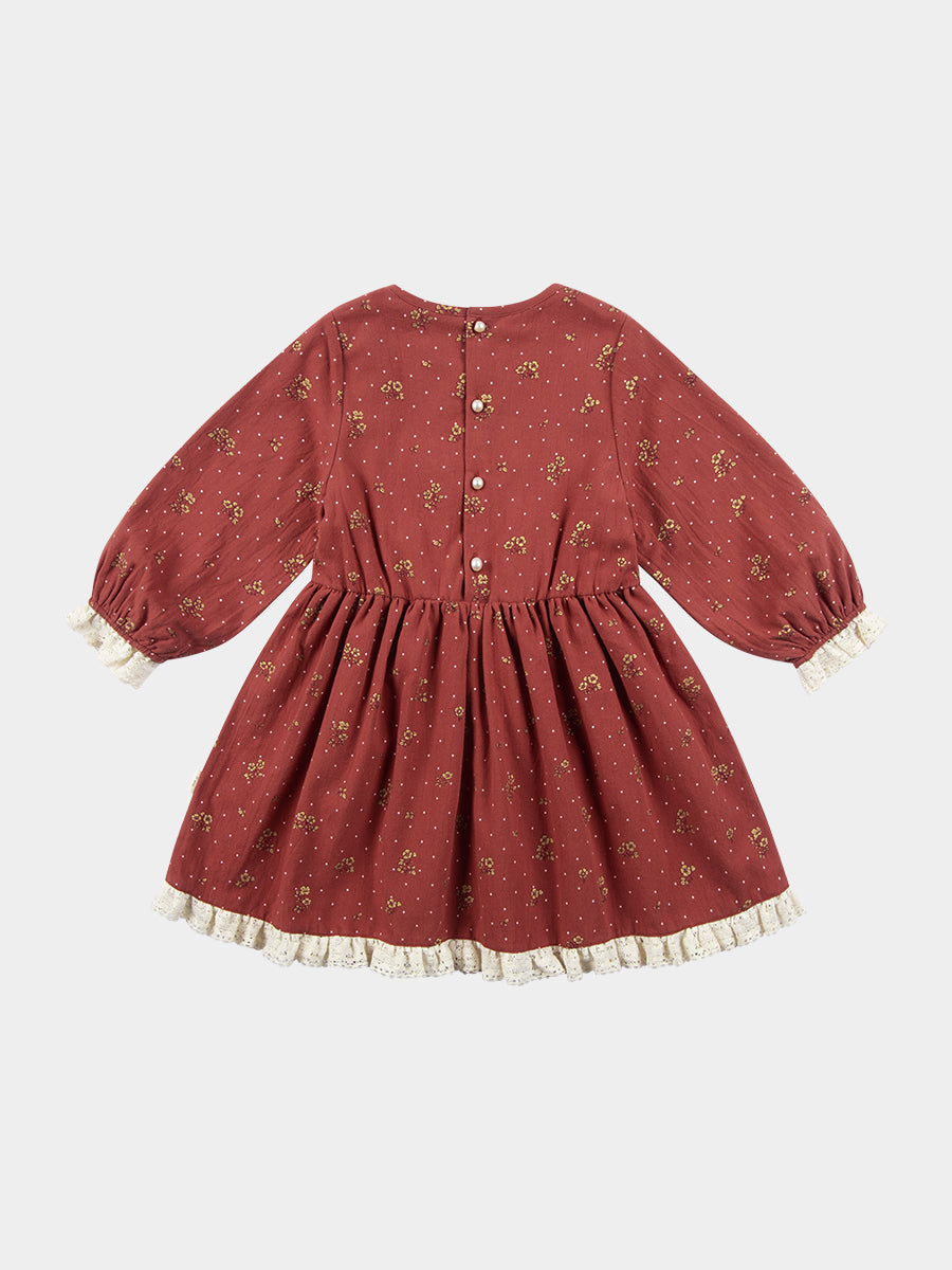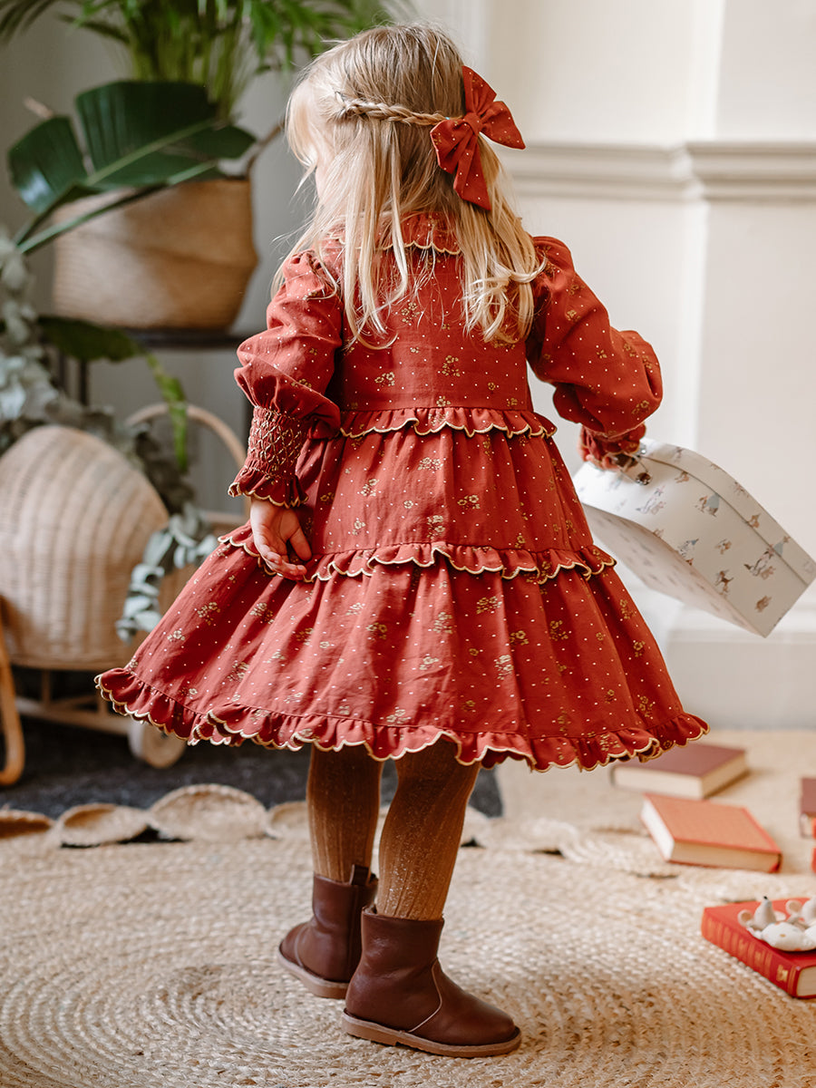 Celine Smocking Dress, Wildflower Polka, Burgundy