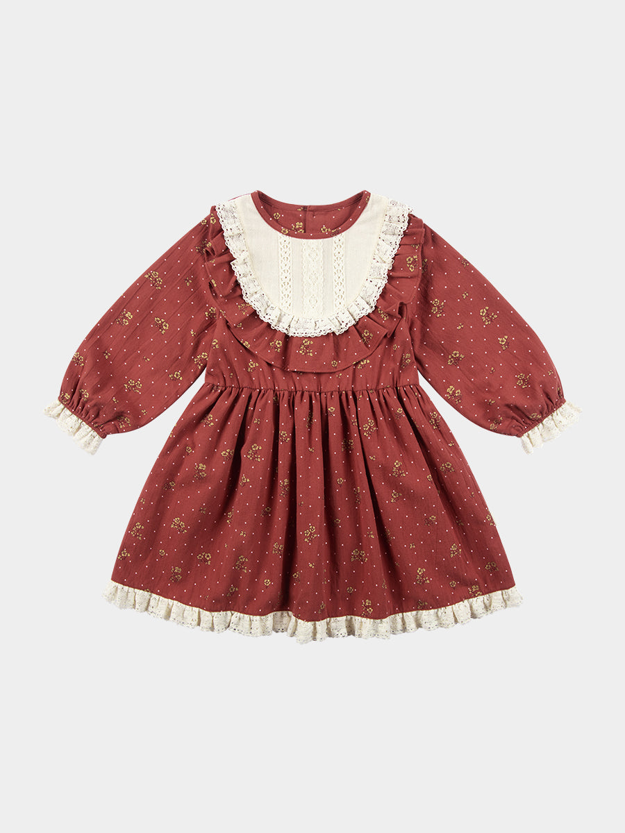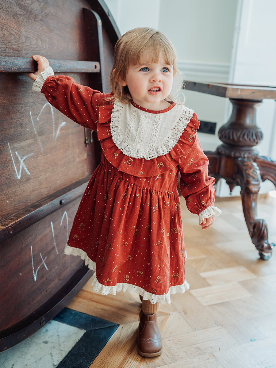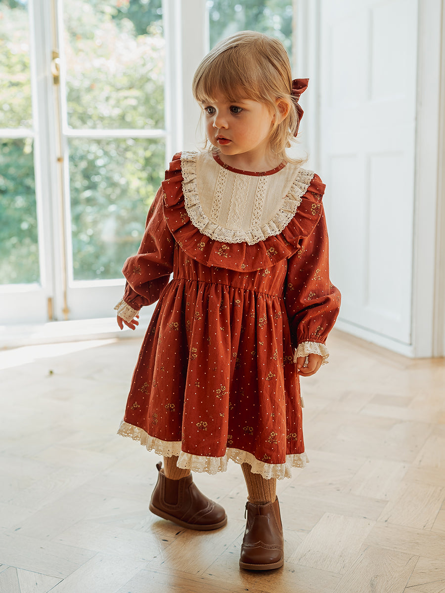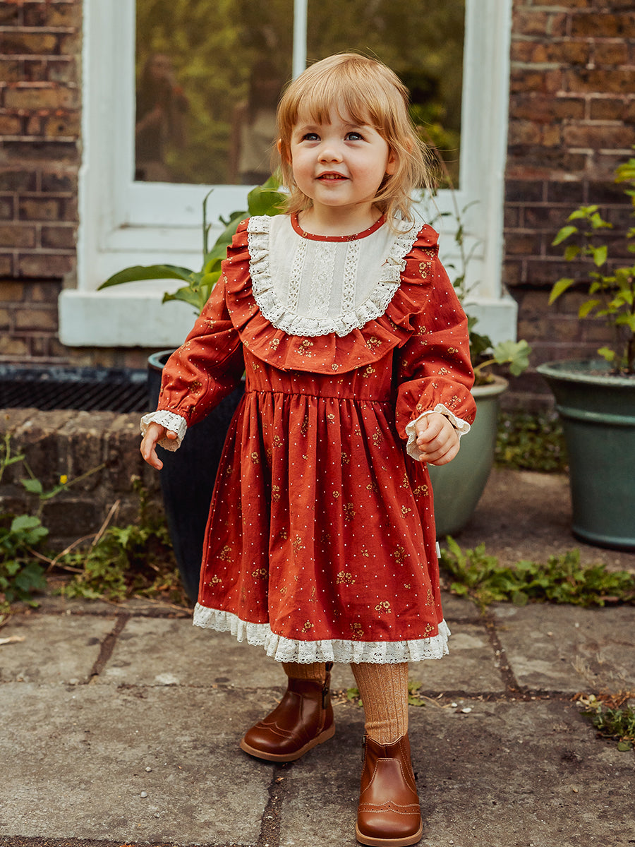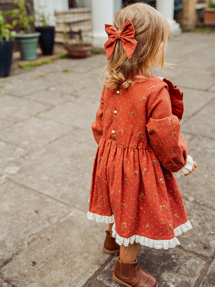Celine Smocking Dress, Wildflower Polka, Burgundy