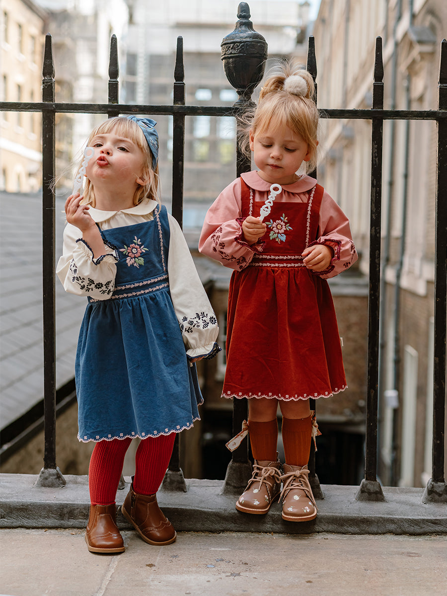 Carey Corduroy Dungaree Dress, Denim Blue