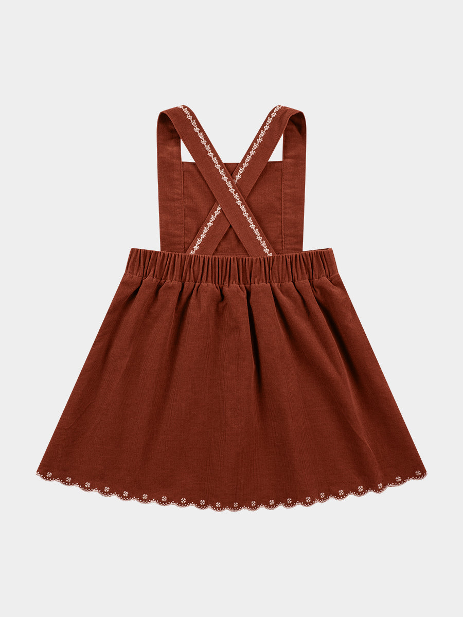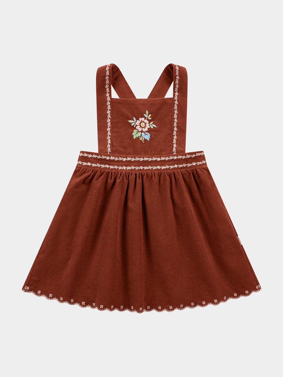 Kalmia Embroidered Corduroy Overall Dress, Khaki