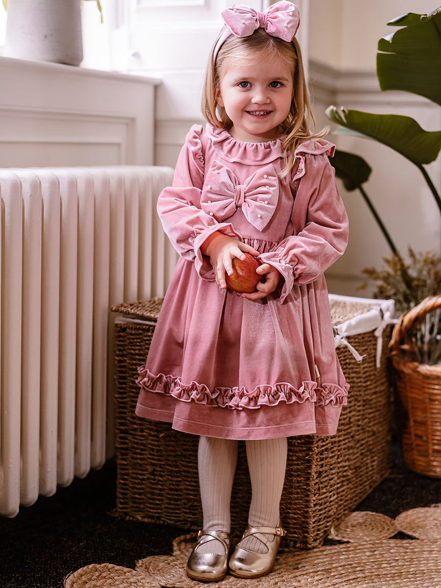 Julie Smocking Dress, Velvet Pink