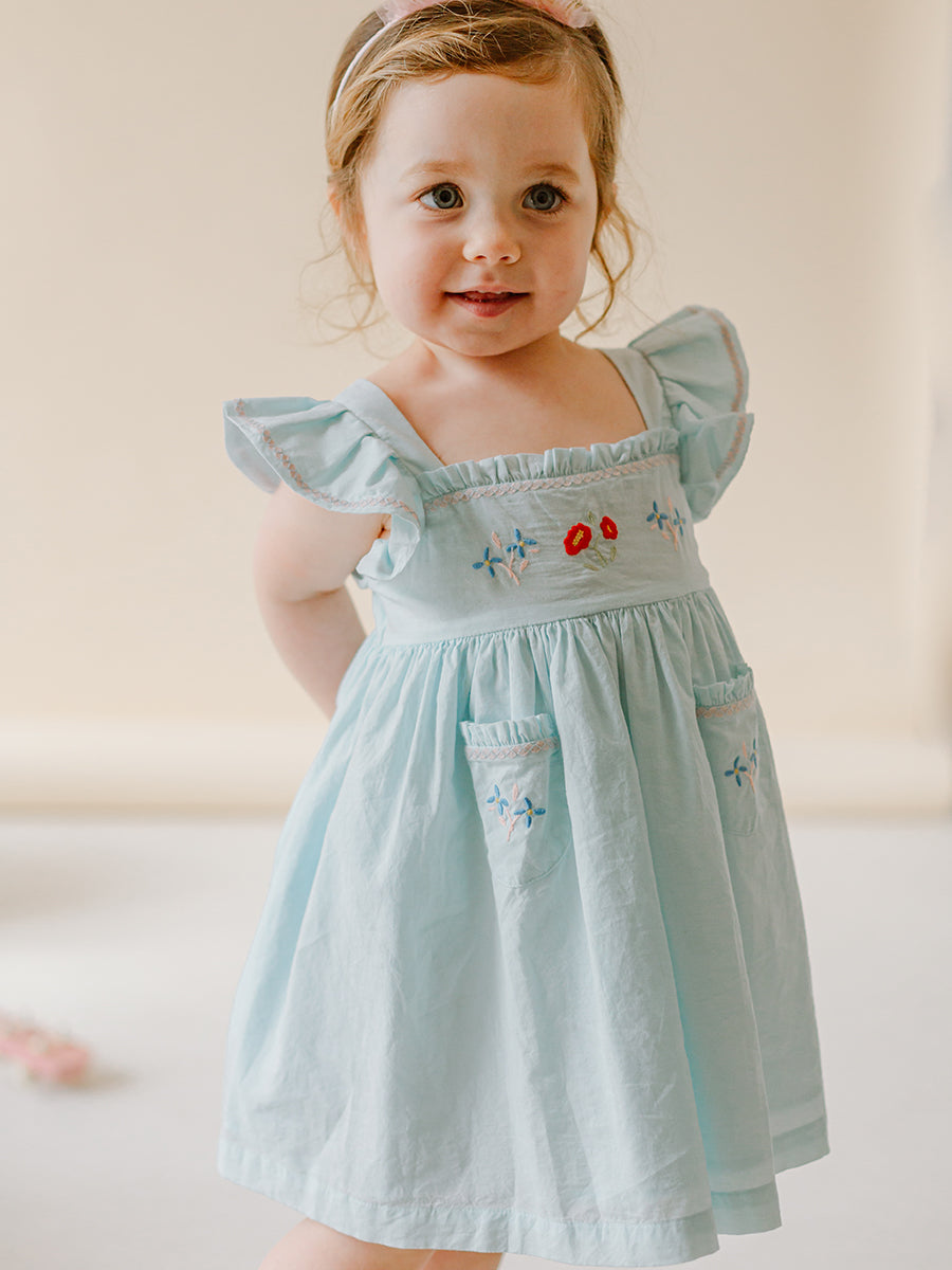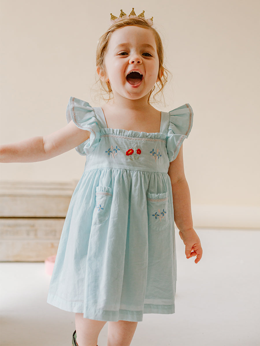 Shaftesbury Hand-Embroidered Dress, Soda Blue
