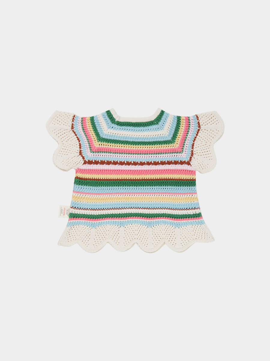 Strawberry Hand-Embroidered Cardigan, Crème Brulee