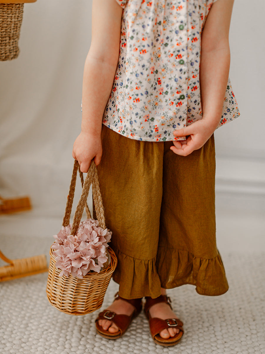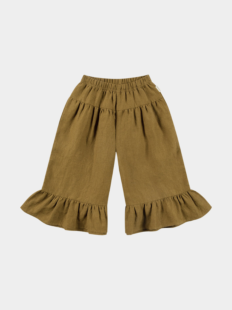 Leela Linen Flared Trousers, Amber Brown