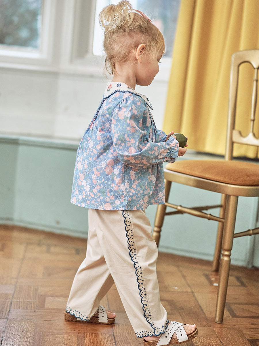 Monceux Embroidered Blouse, Wildflower Lawn - Blue
