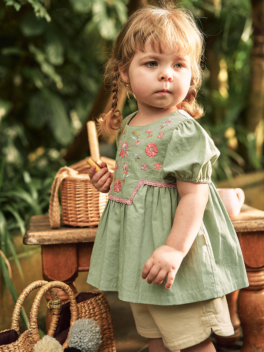 Monceux Embroidered Blouse, Primrose Vine Yard - Green