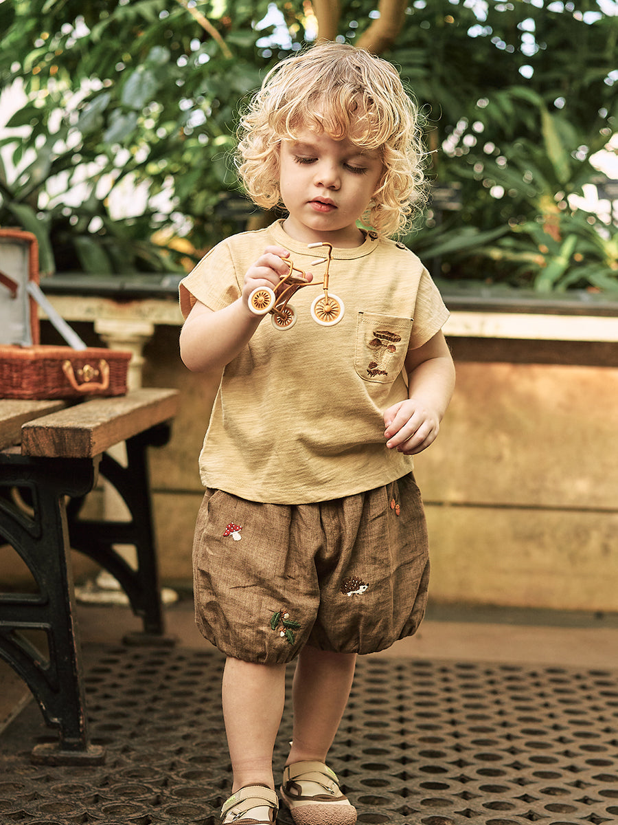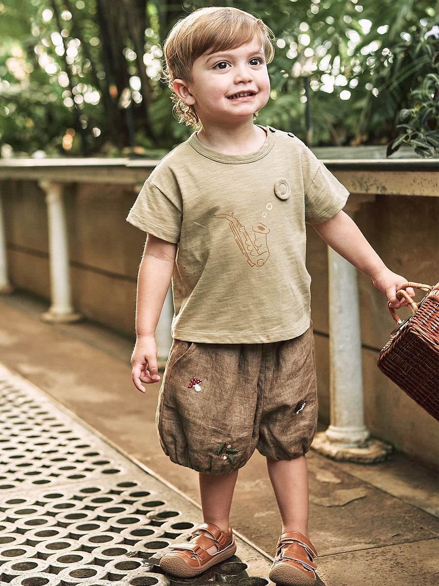 Krish Embroidered Shorts, Natural Linen