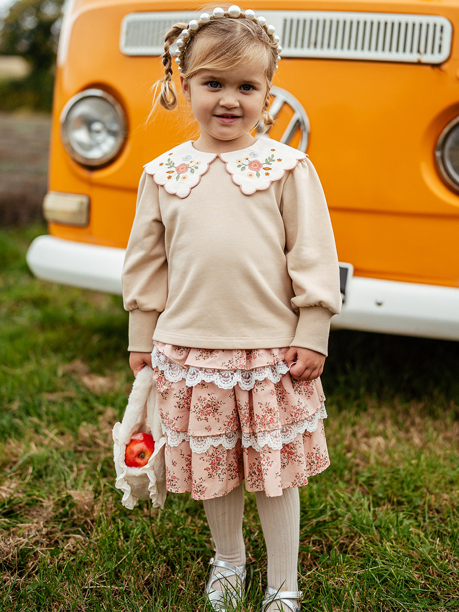 Kent Floral Knitted Skirt, Grapefruit Pink