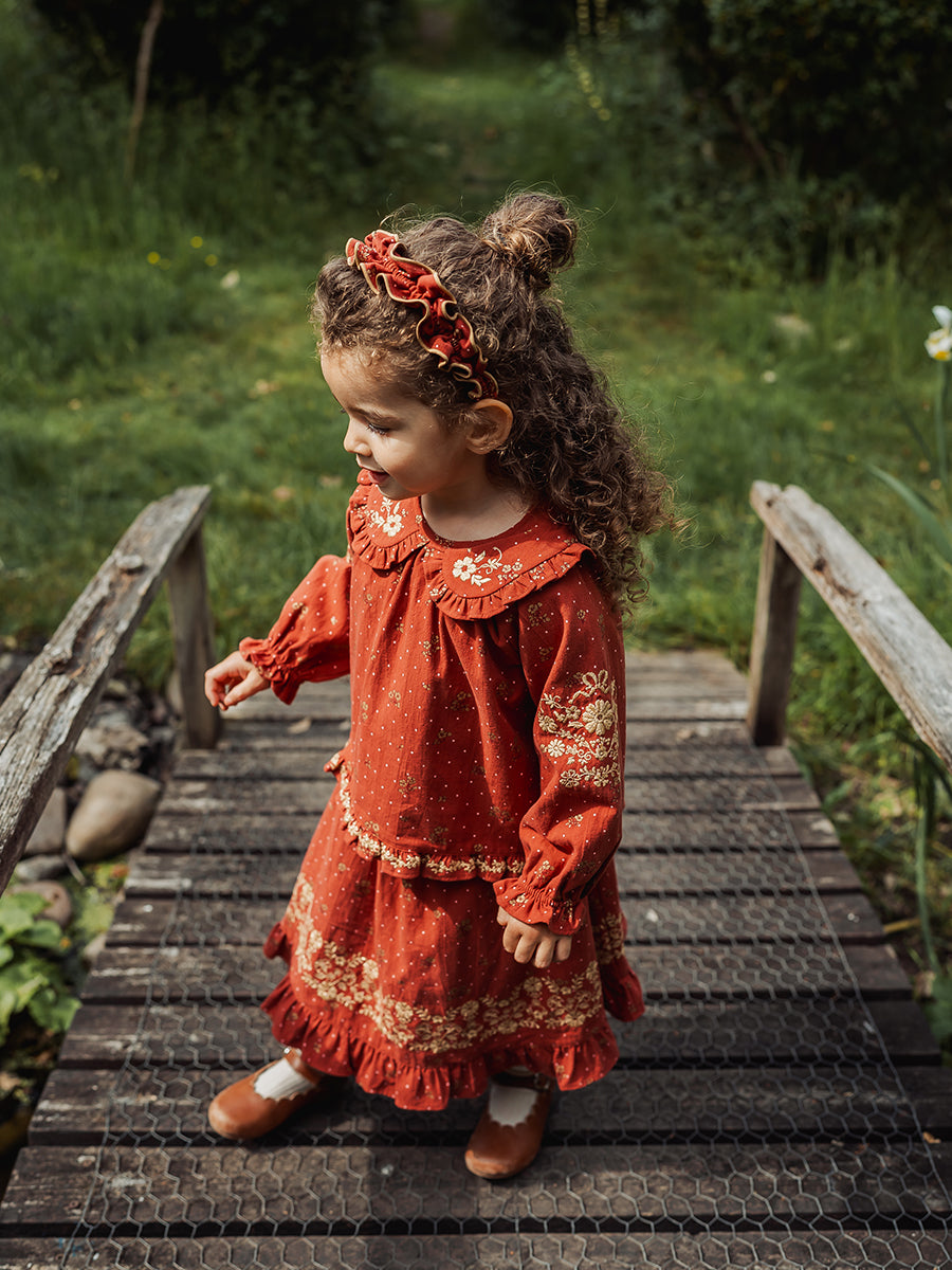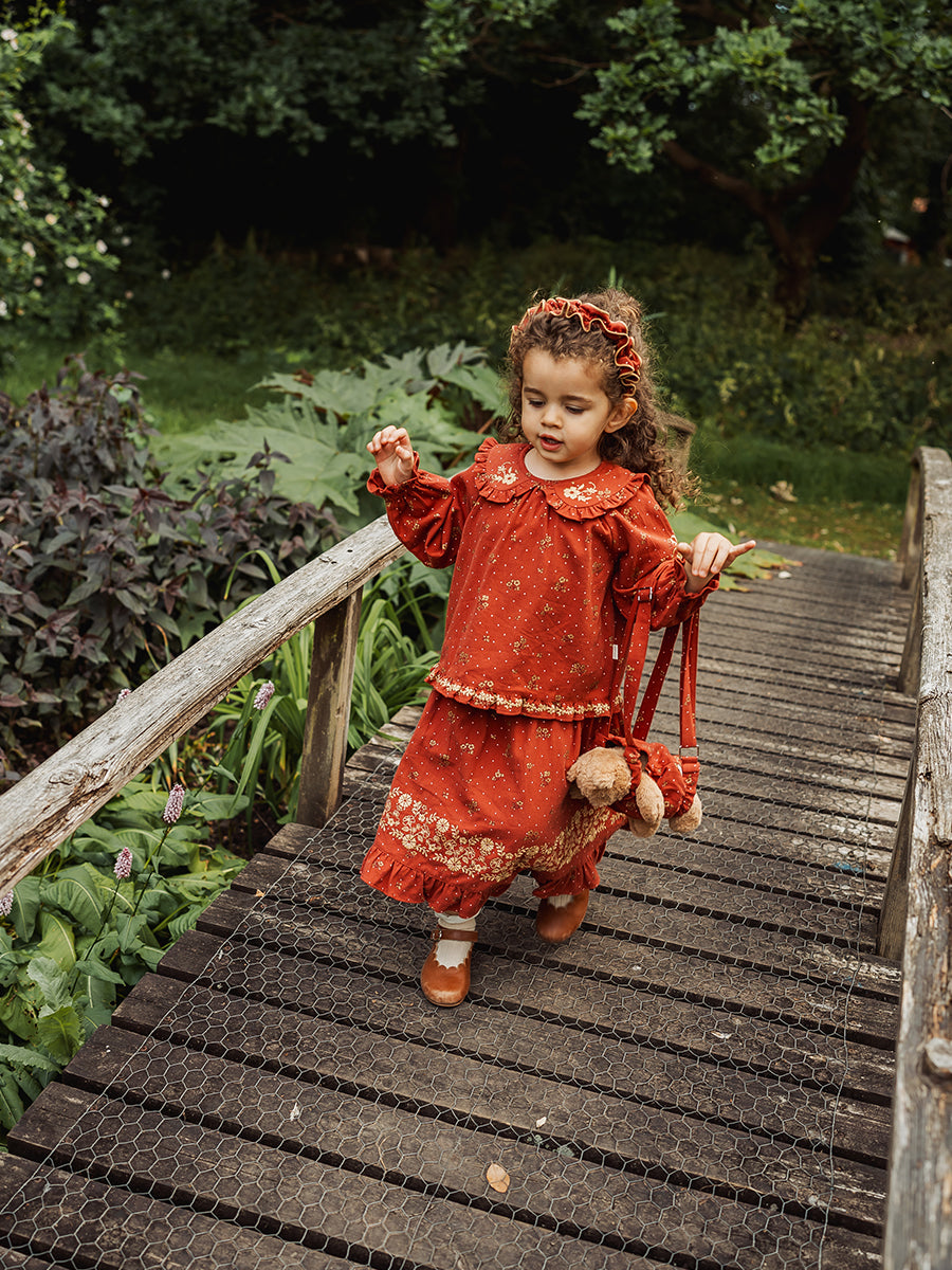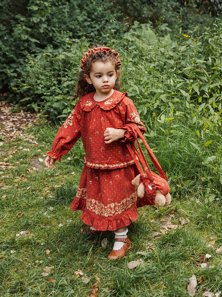 Lena Skirt, Wildflower Polka, Burgundy