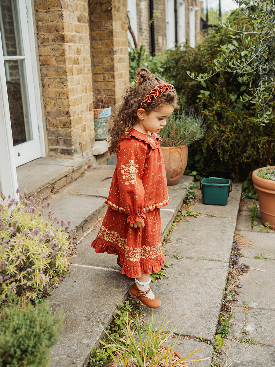 Laila Embroidered Dress, Strawberry Flower Field, Blush