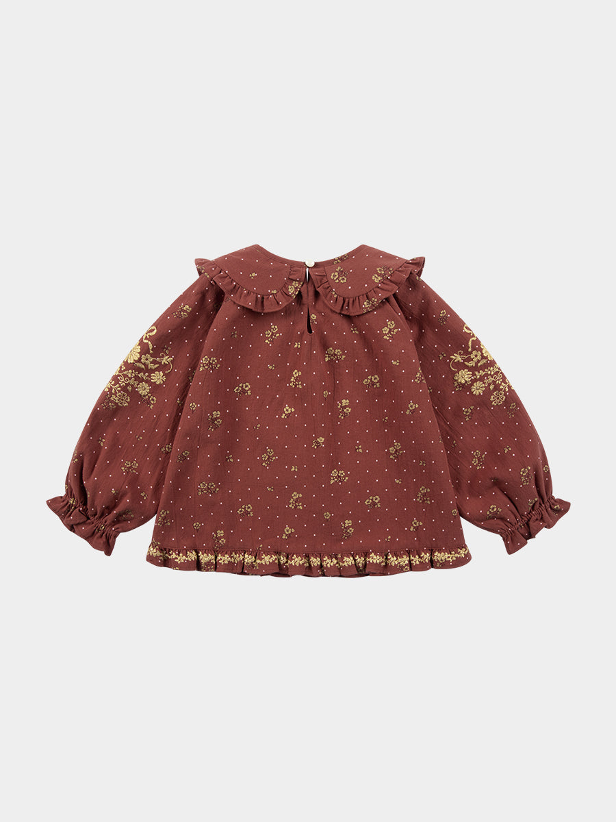 Karina Blouse, Wildflower Polka, Burgundy