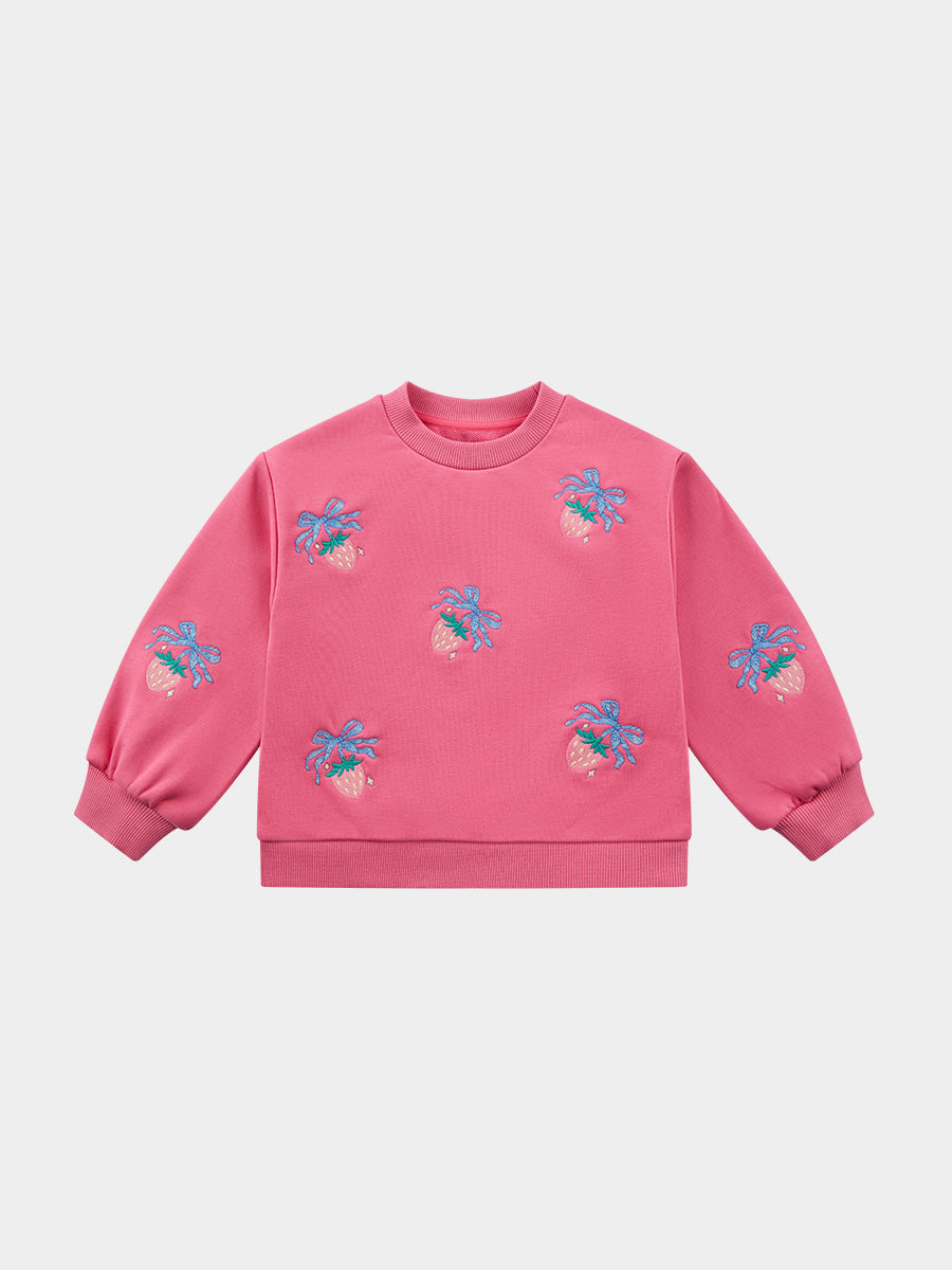 Strawberry Hand-Embroidered Cardigan, Princess Pink