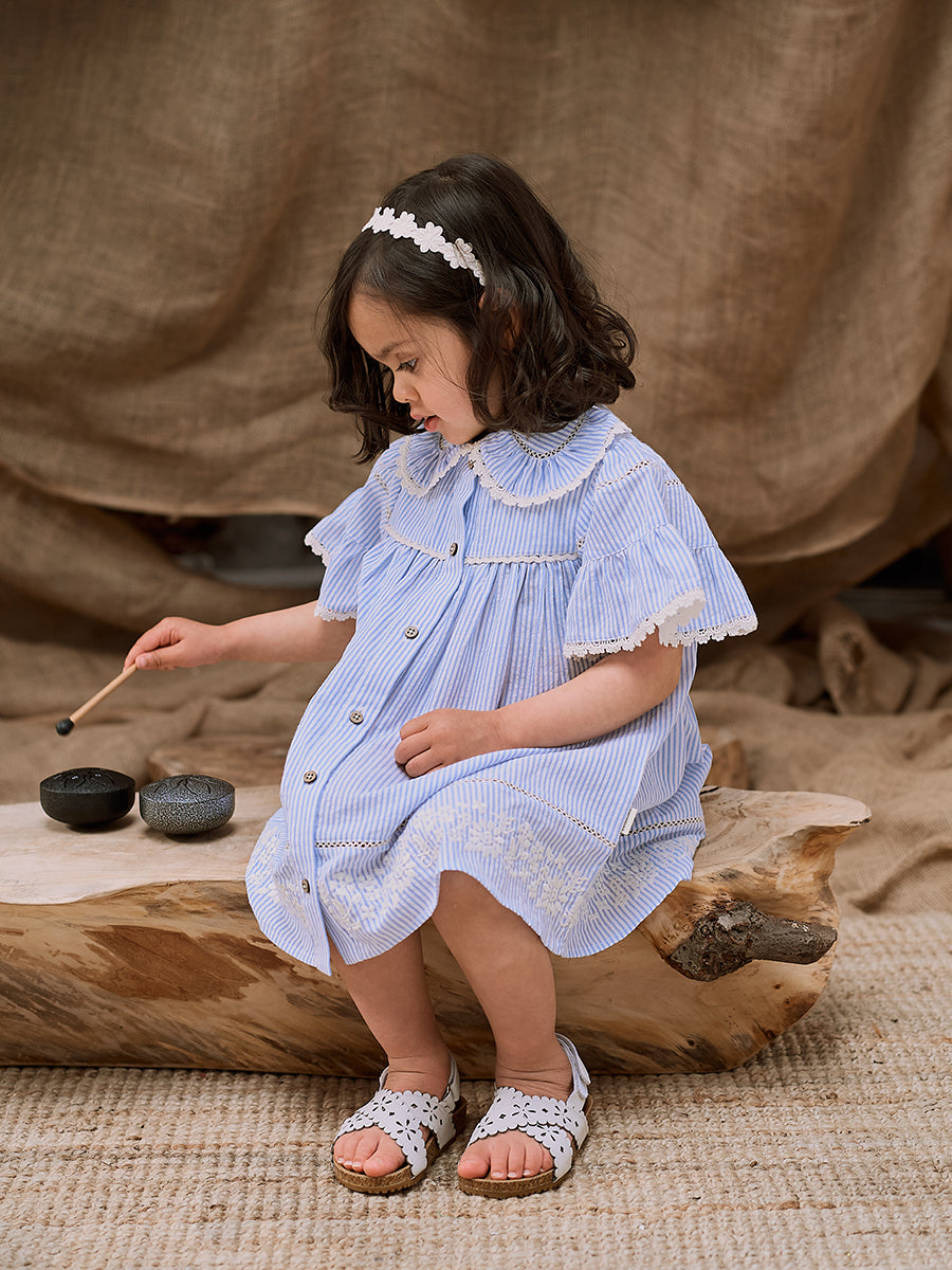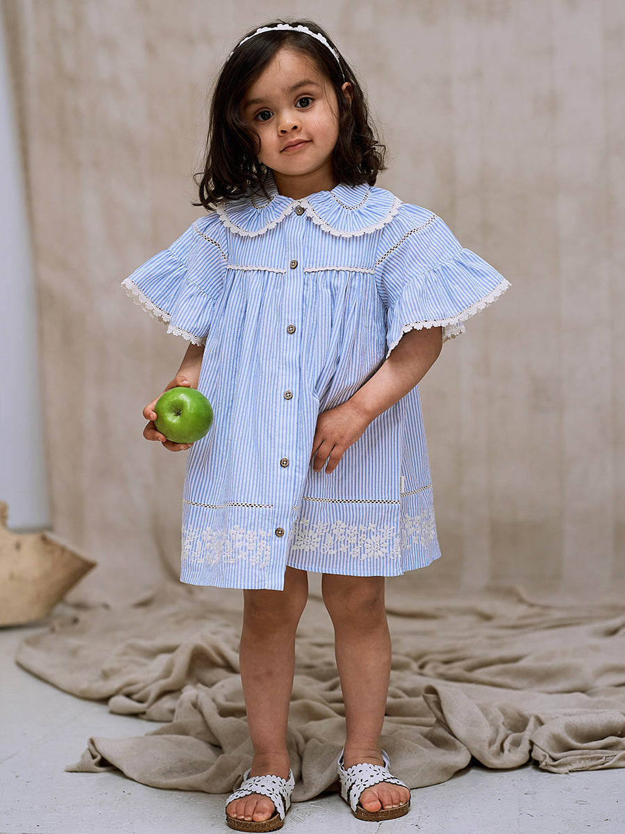 Shaftesbury Hand-Embroidered Dress, Soda Blue
