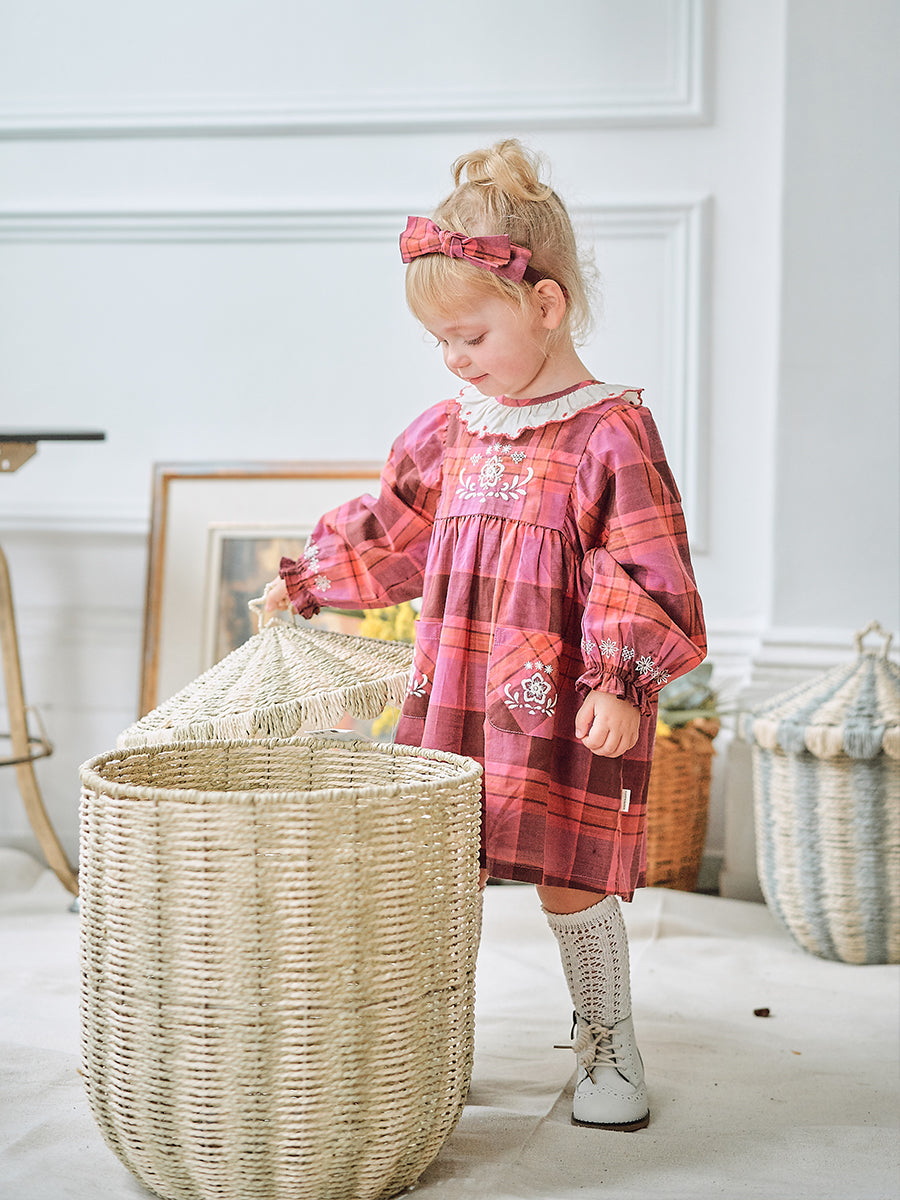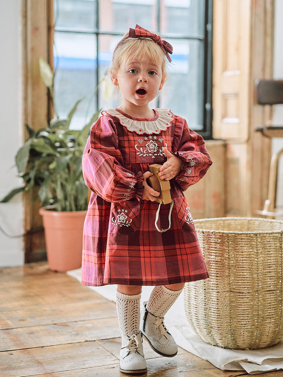 Mia Embroidered Dress, Pink Check