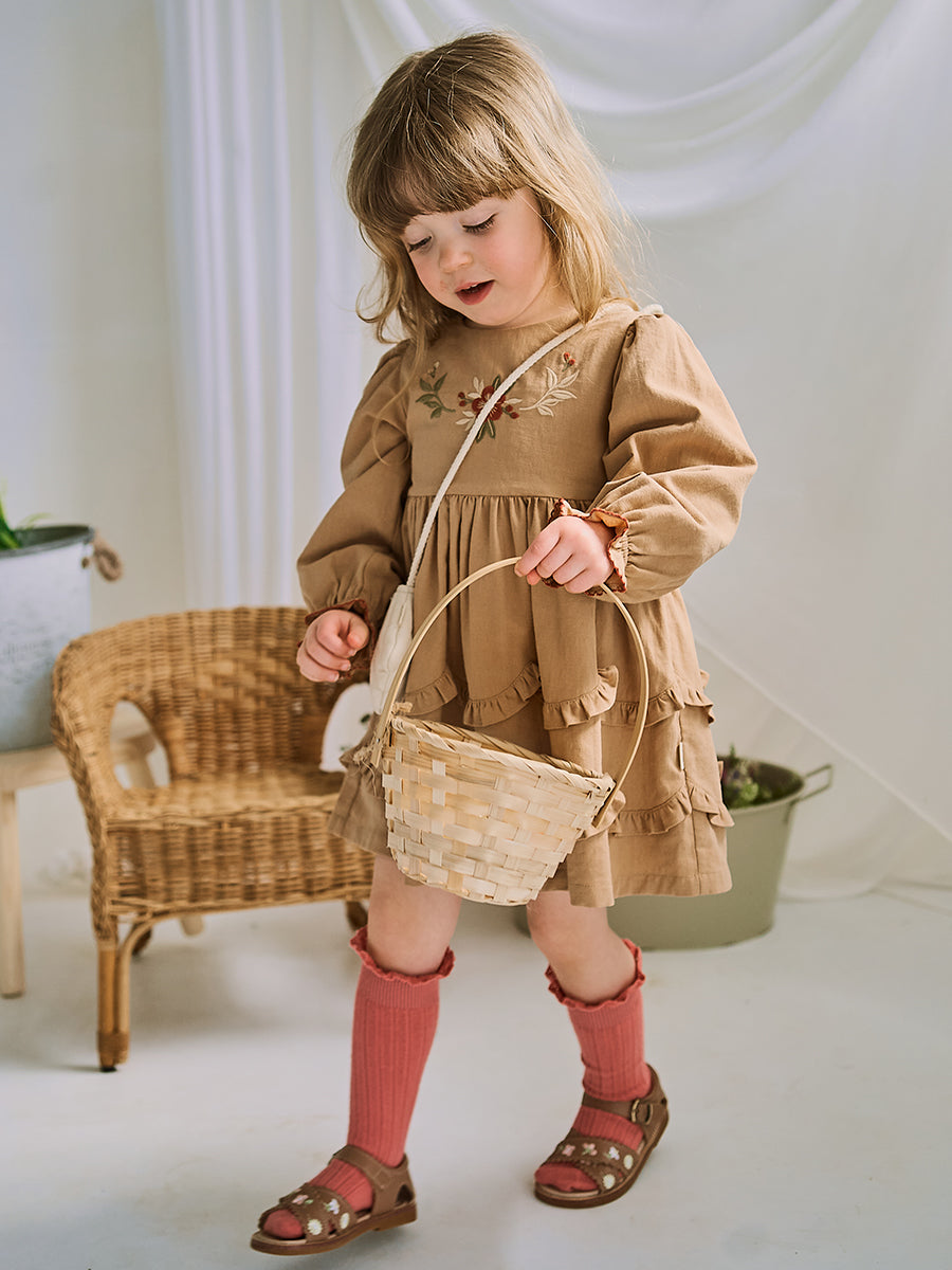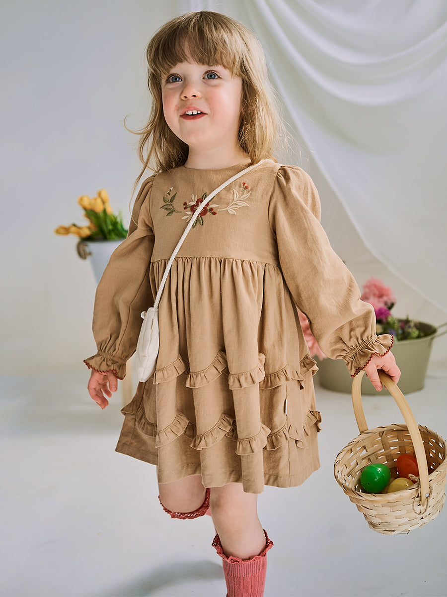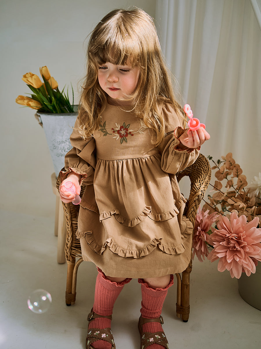 Monica Embroidered Dress, Light Mocha