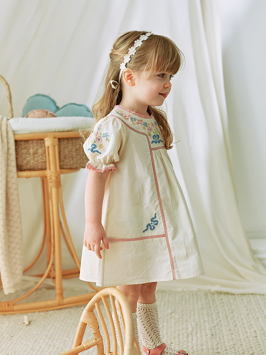 Morray Embroidered Dress, Crème Brulee