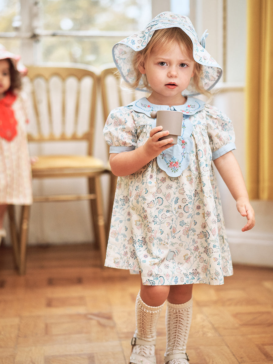 Mira Hand Embroidered Dress, Primrose Vine Yard Blue