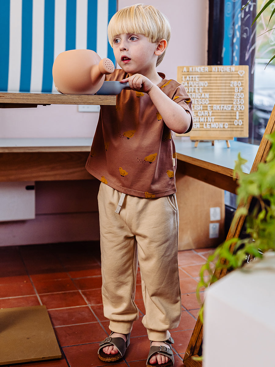 Rotherham Organic Cotton Jersey T-Shirt, Happy Chicklings Khaki