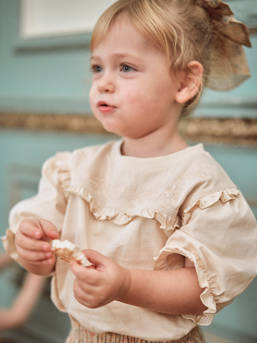 Adiya Embroidered Blouse, Mid Summer Garden Milk