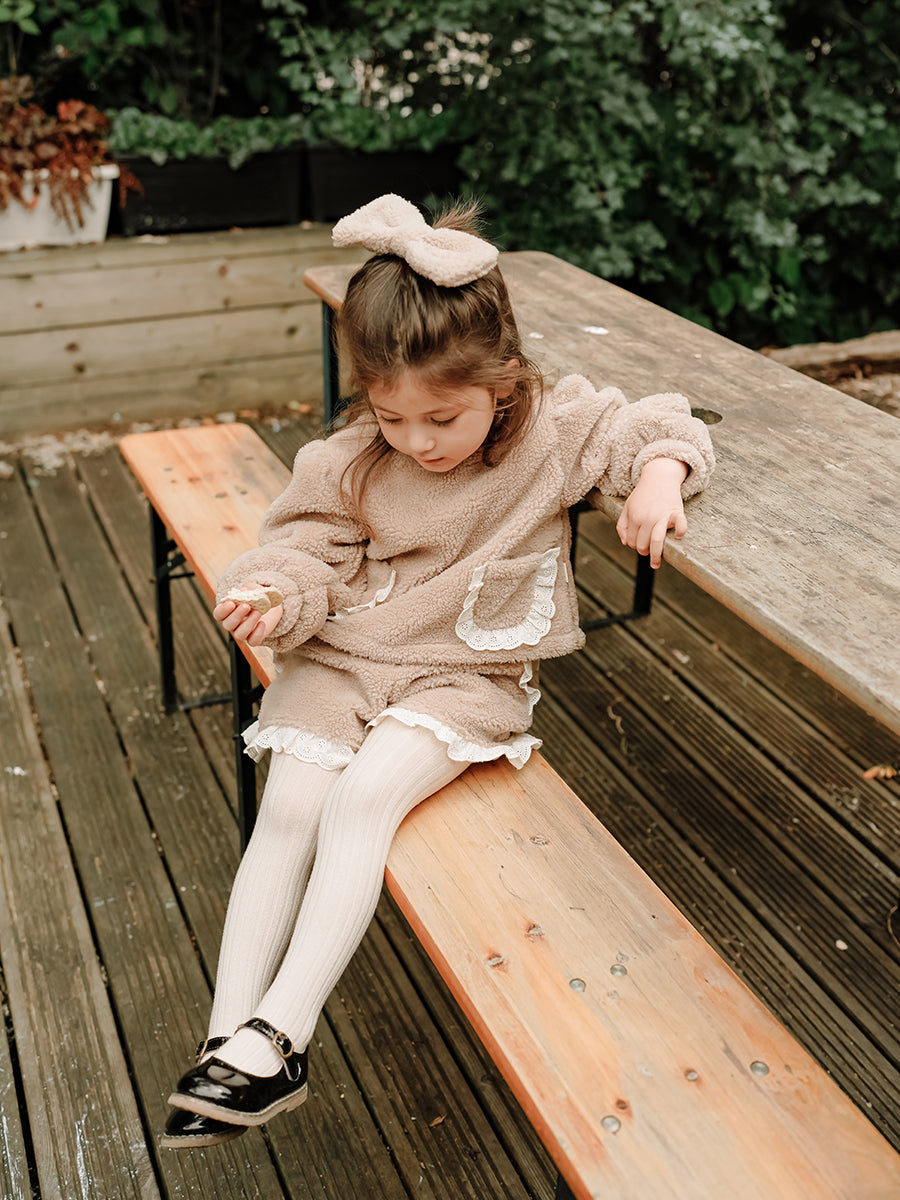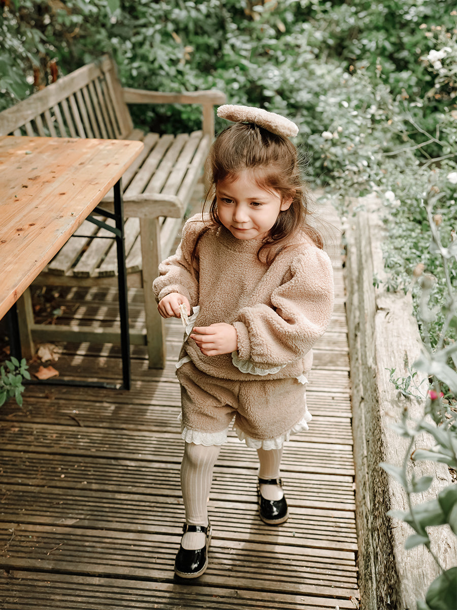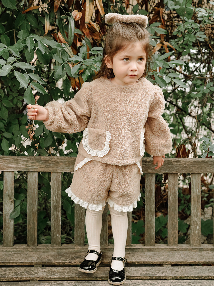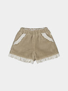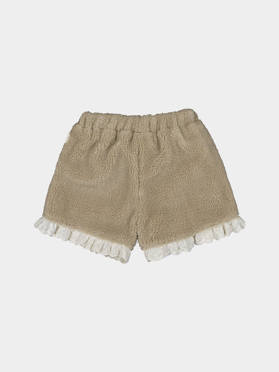 Calendula Faux Fur Jersey Shorts, Khaki