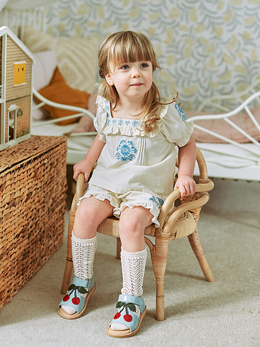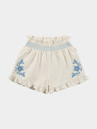Daliya Embroidered Shorts, Almond White