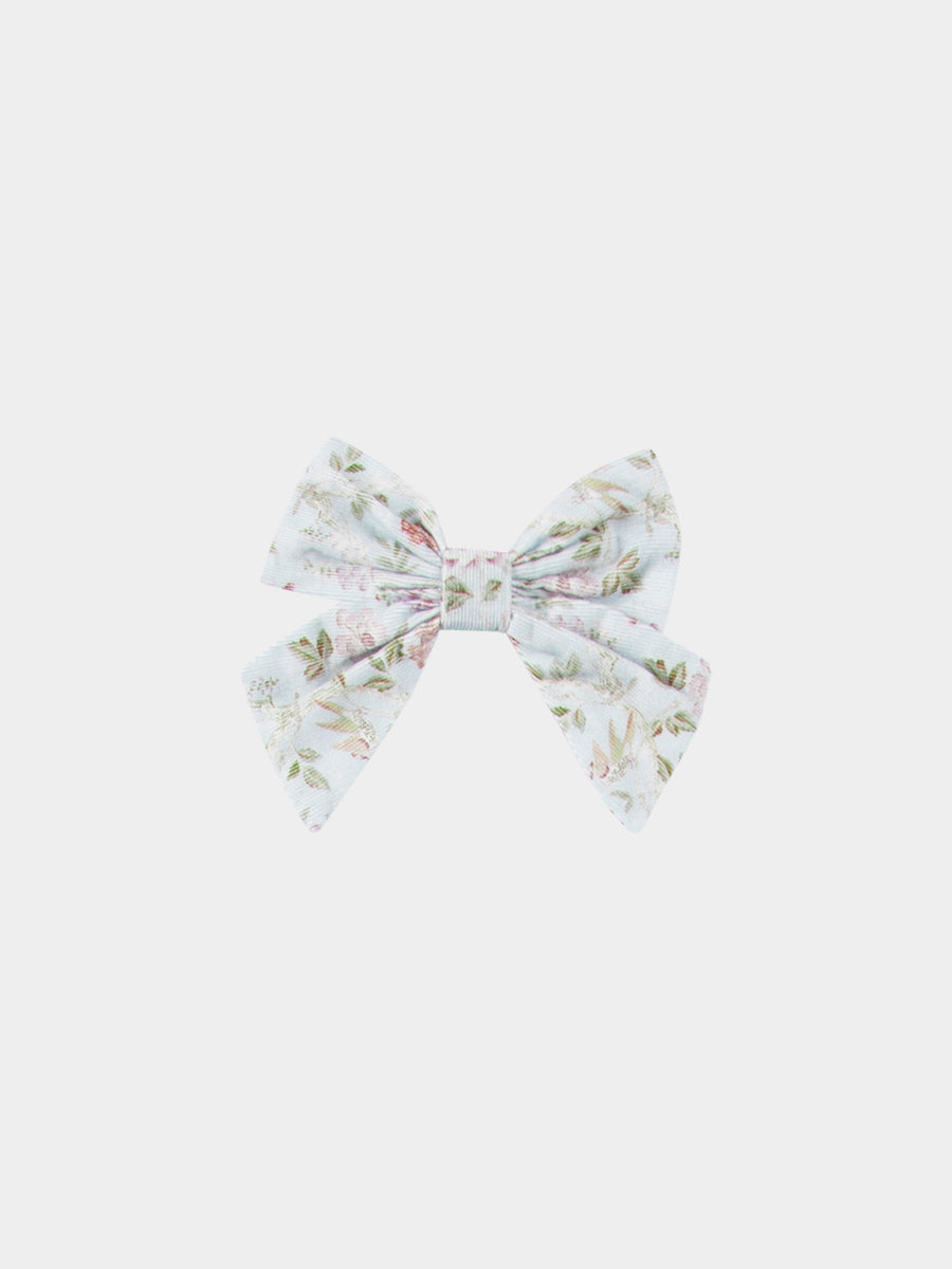 Vienna Embroidered Bow Hair Clip, Sky Grey