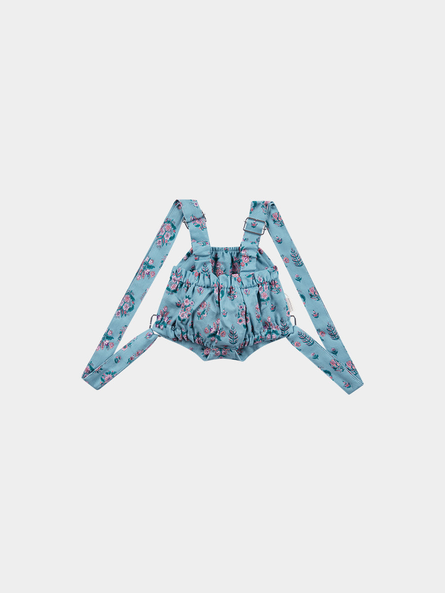 Teddy Bear Overall Shorts, Leela Botanic, Teal