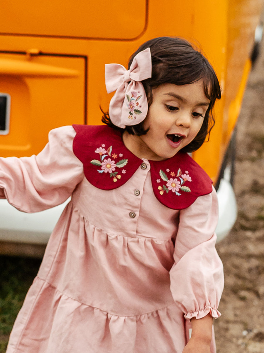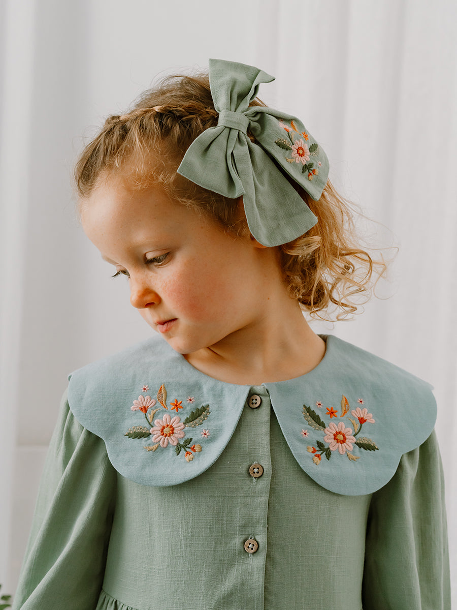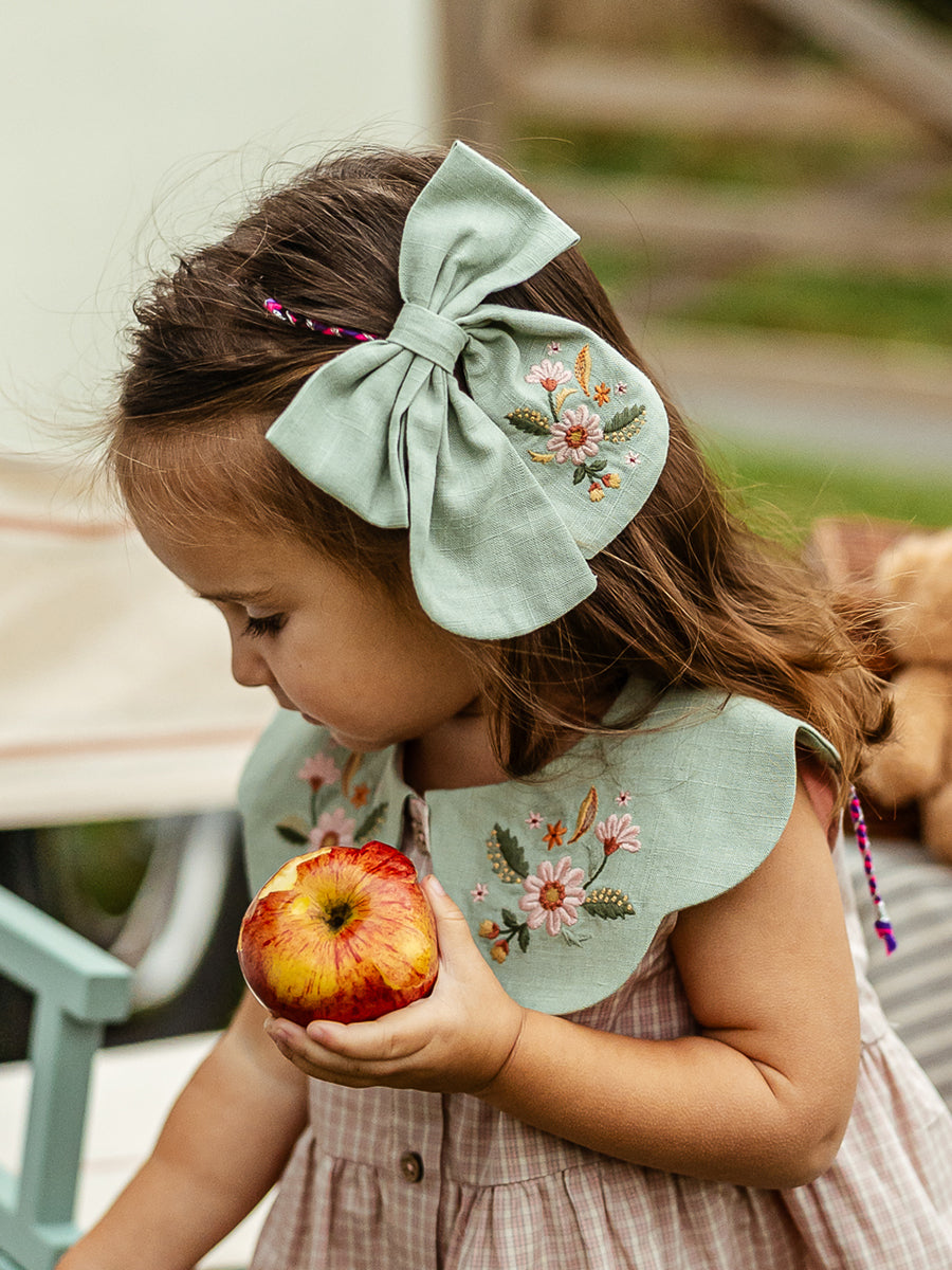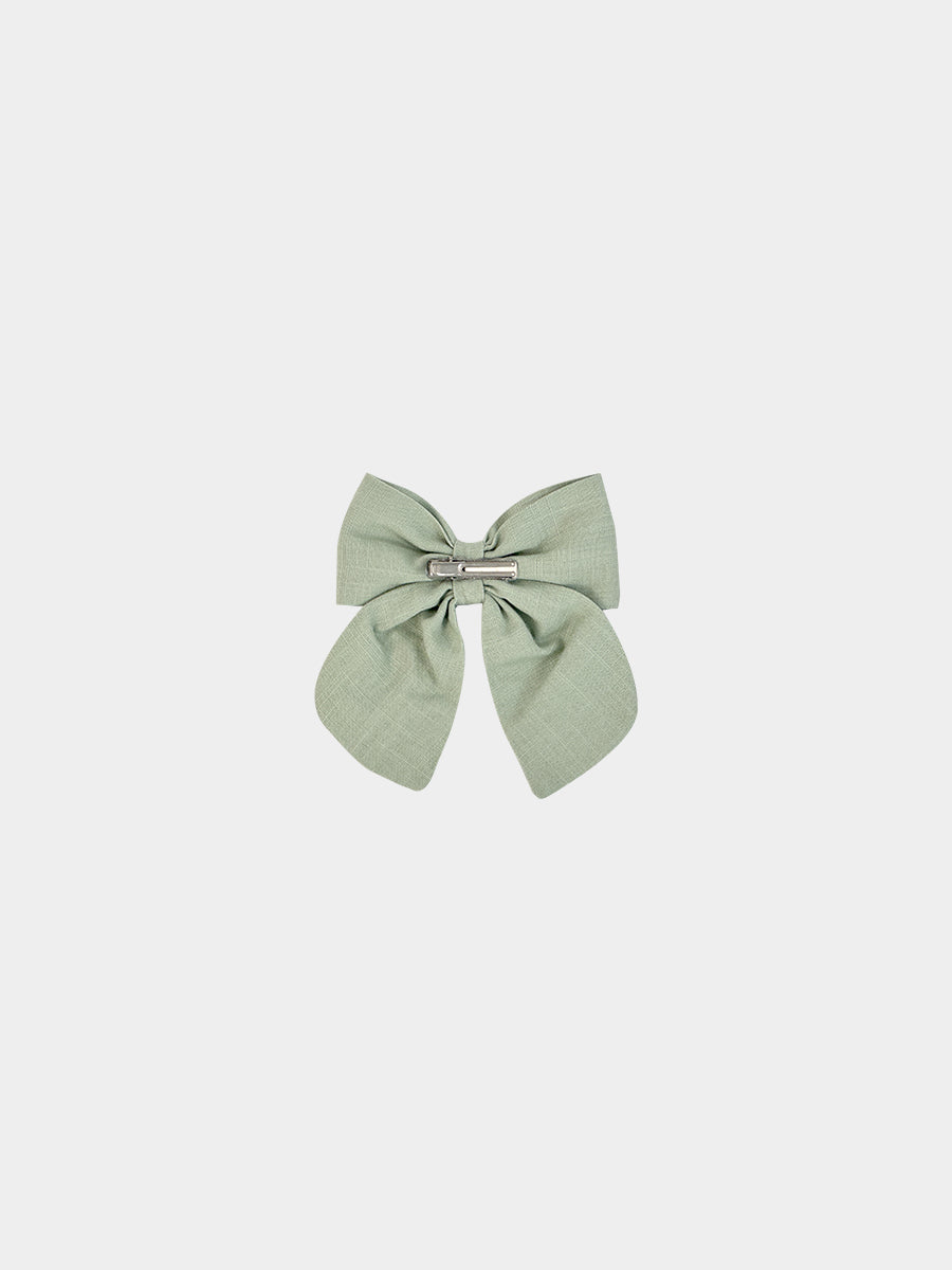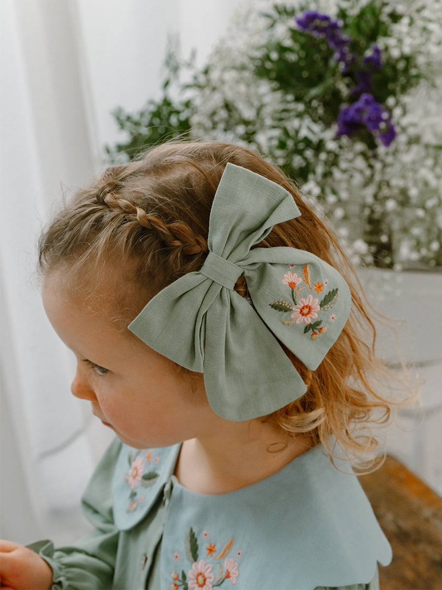 Vienna Embroidered Bow Hair Clip, Sky Grey