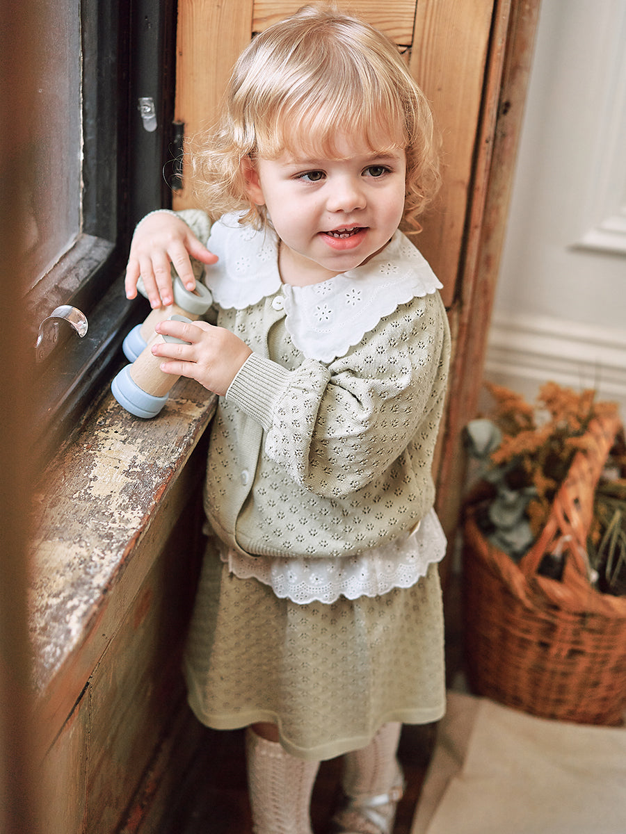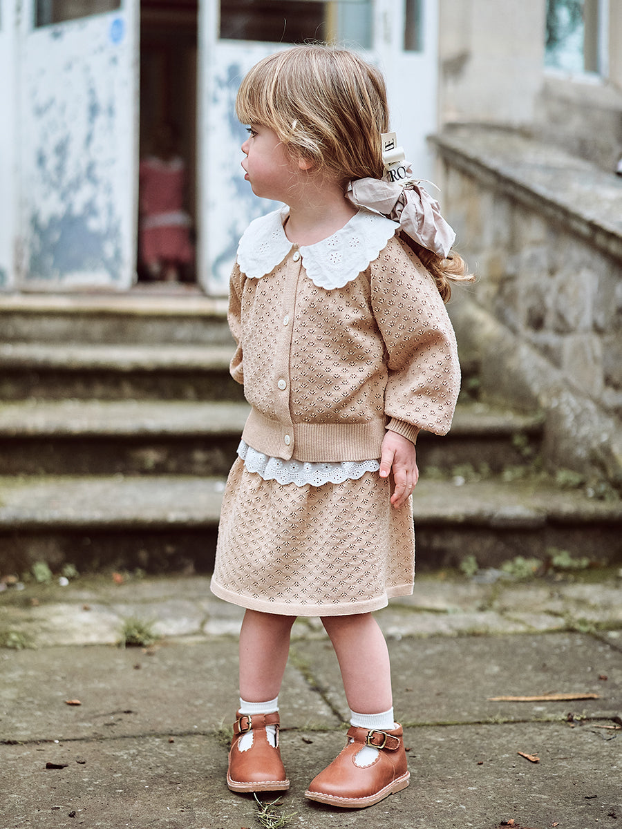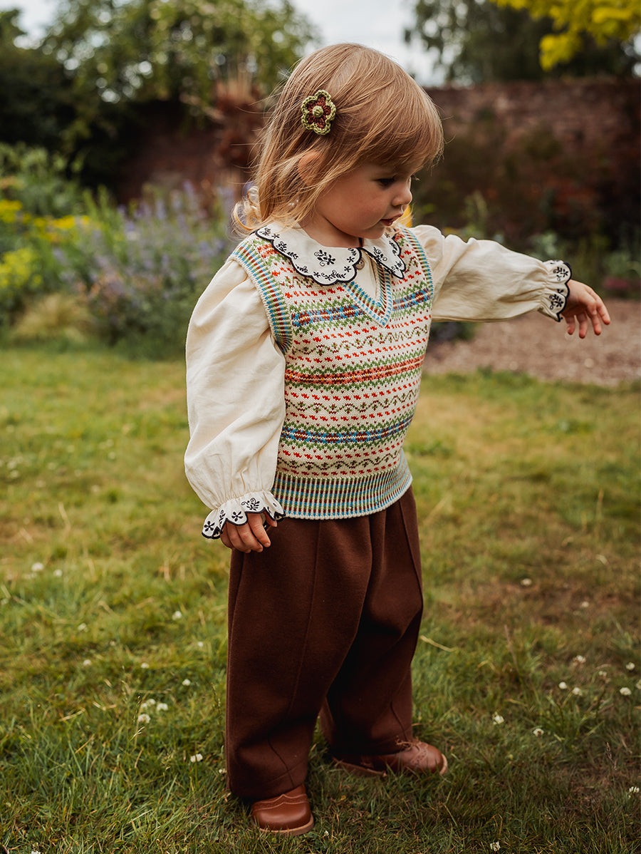 Crafted from the finest natural yarns - plush cashmere, extra-fine merino wool, and soft cotton - our knitwear wraps little ones in breathable warmth and everyday comfort. From timeless silhouettes to our signature Fair Isle patterns, each piece is designed and knitted in-house.