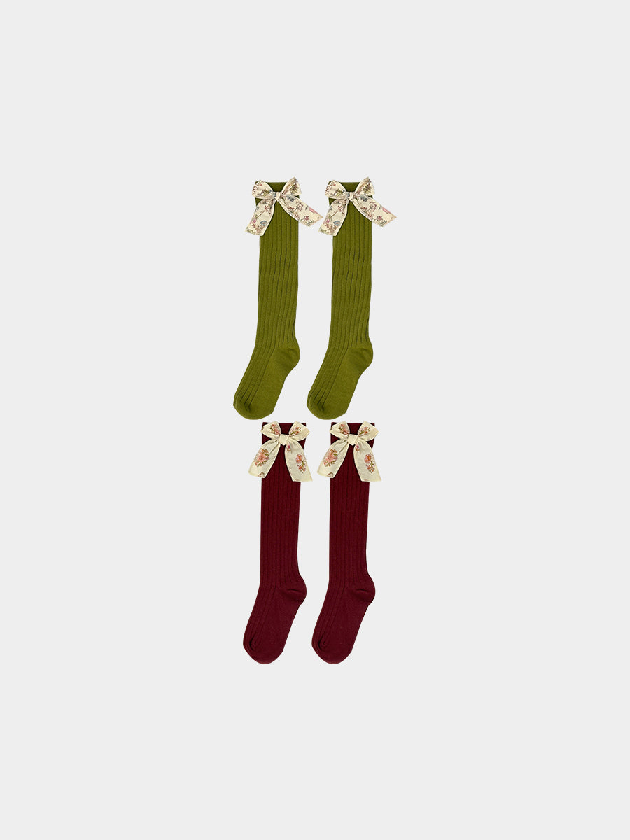 Noelle Bow Socks, Pomegranate Red & Avocado Green